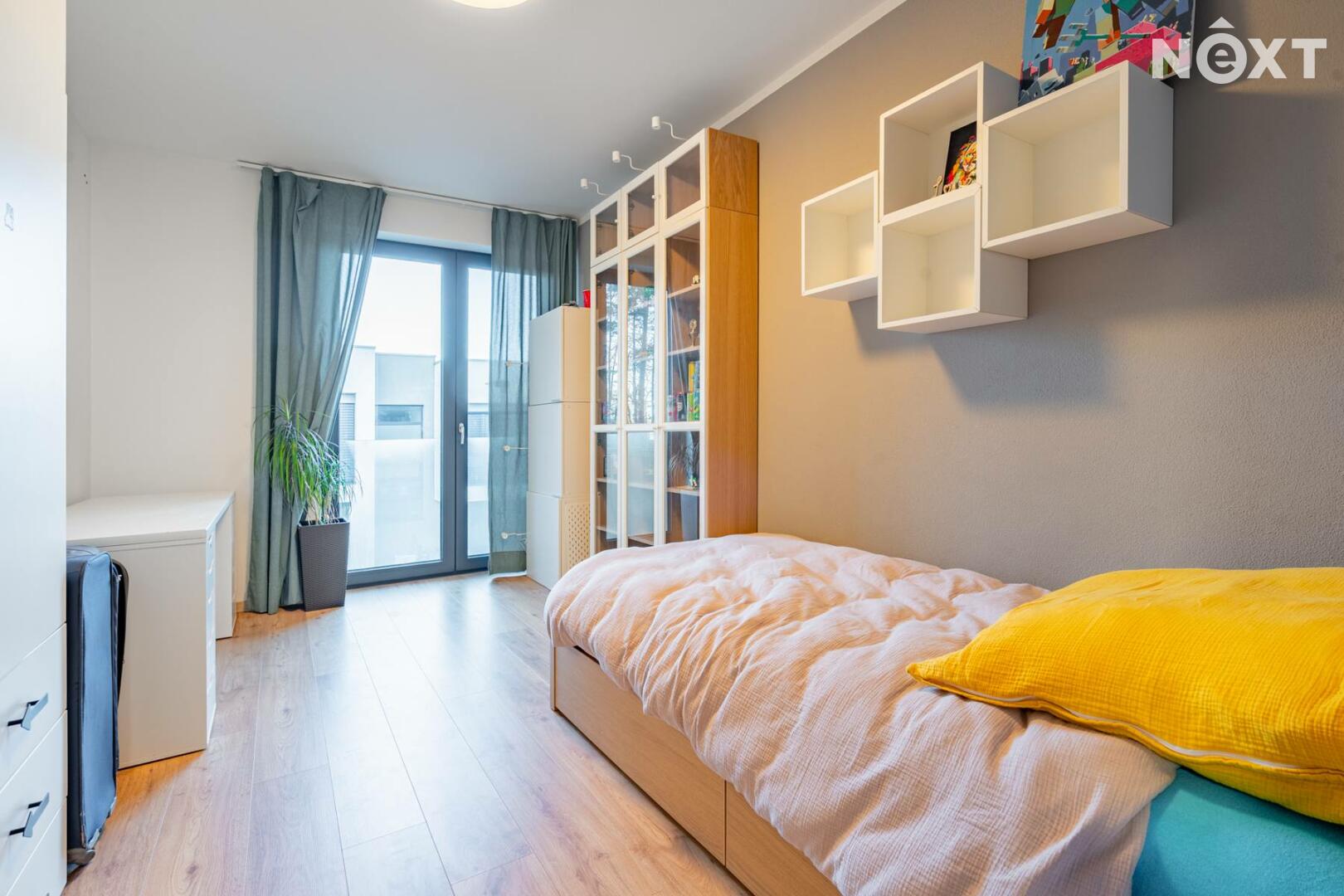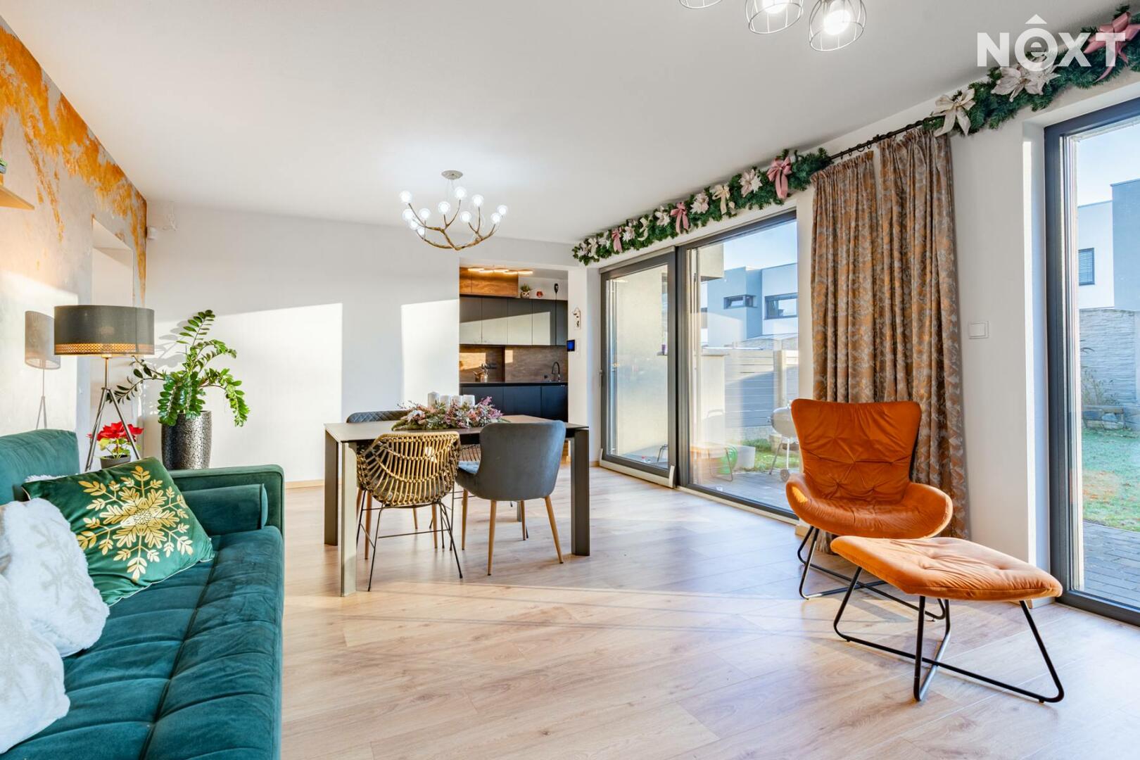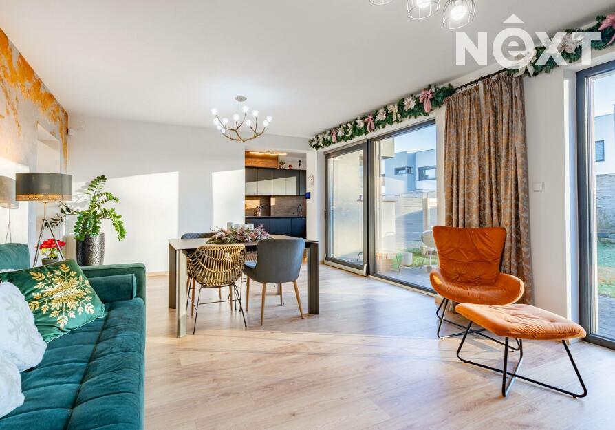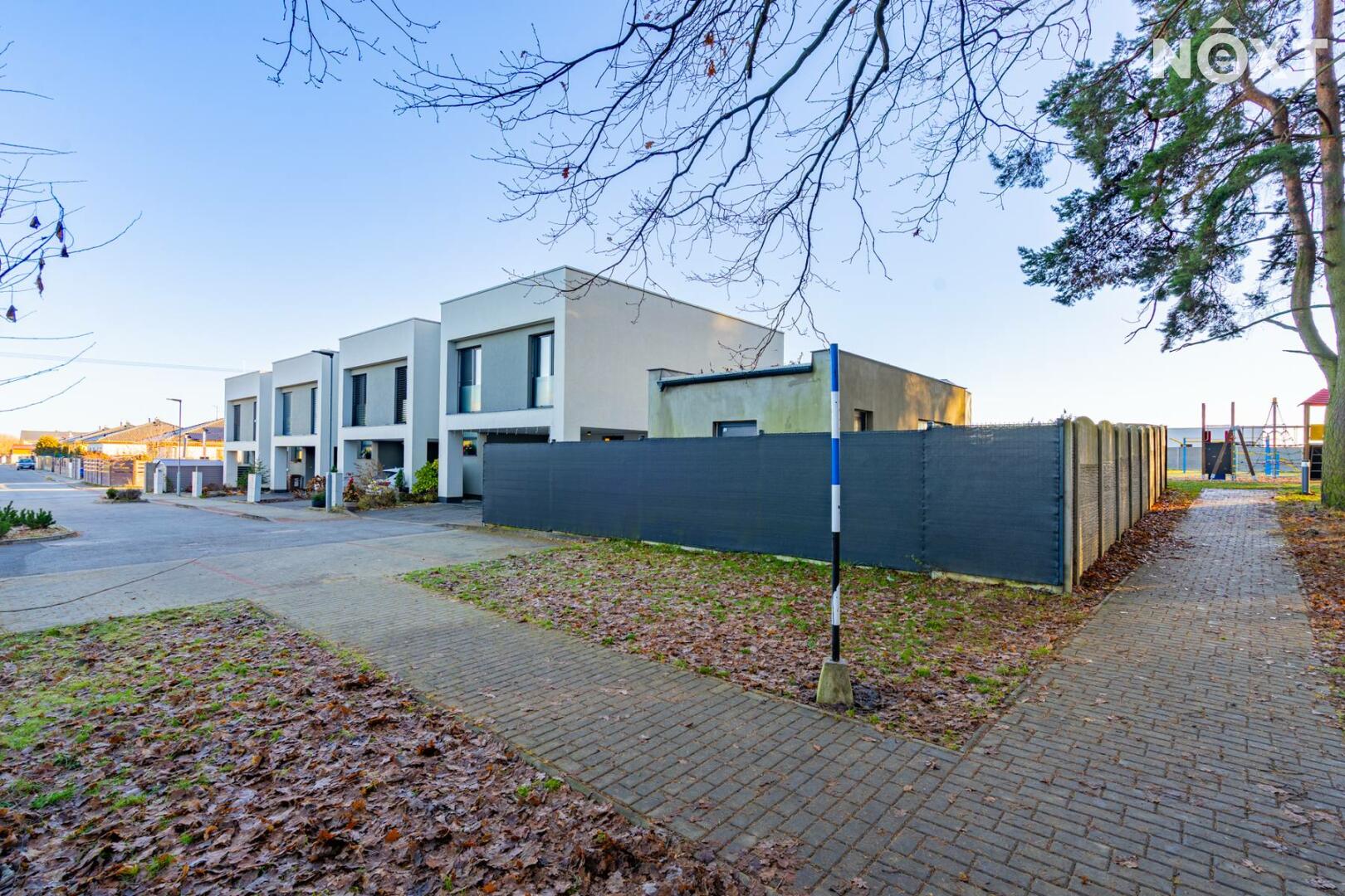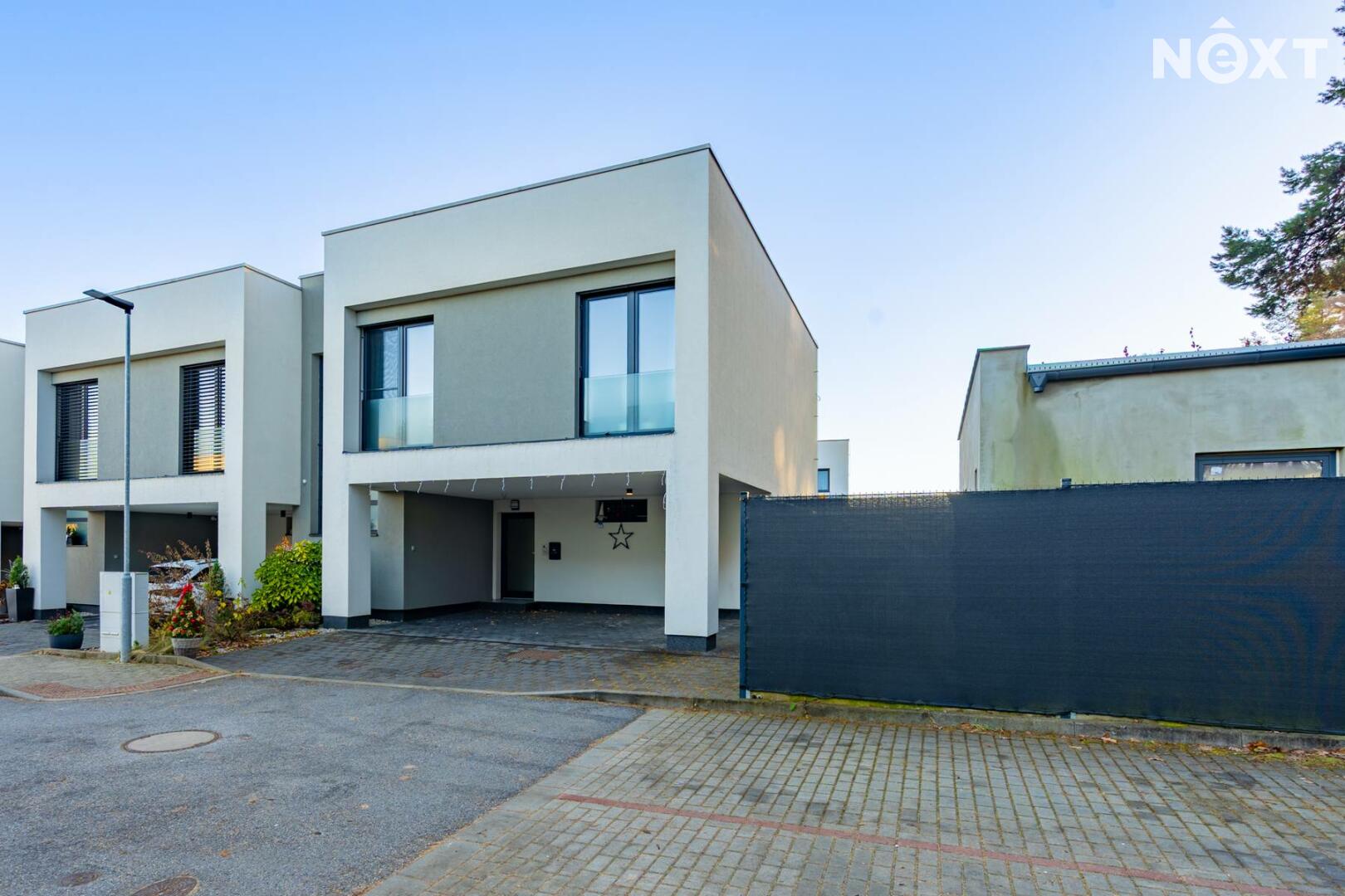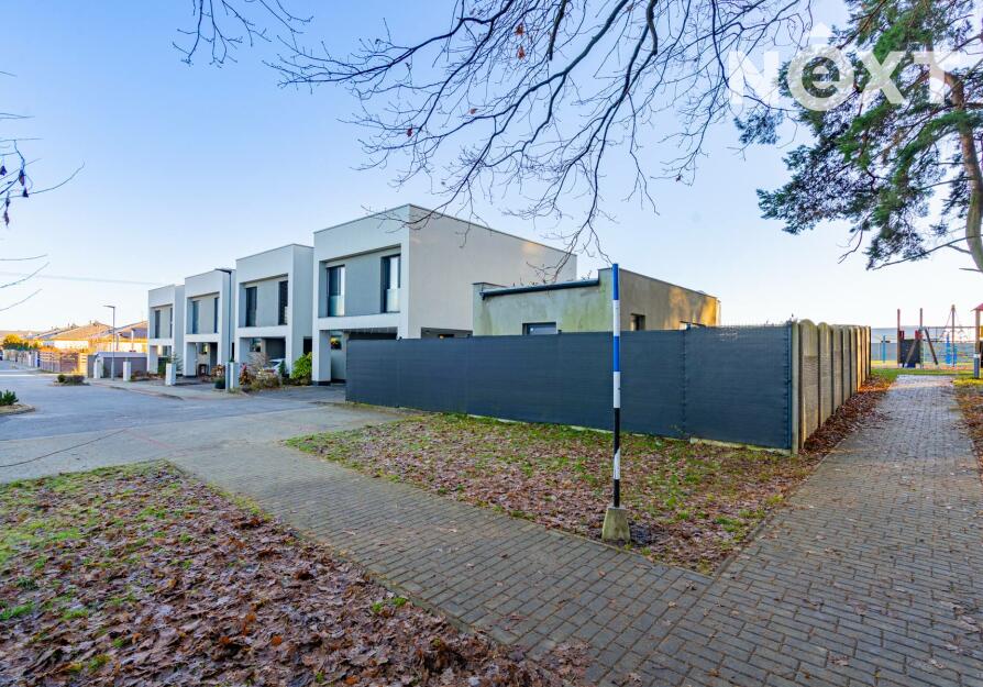 K domu náleží dvě parkovací stání přímo před domem, dále zvenku přístupný uzamykatelný sklad, ideální pro kola, sportovní vybavení či zahradní techniku. Další jedinečnou výhodou této nemovitosti je vjezd na pozemek skrze pojízdnou posuvnou bránu, což je u řadových domů zcela výjimečné řešení a výrazně zvyšuje komfort i bezpečnost bydlení.