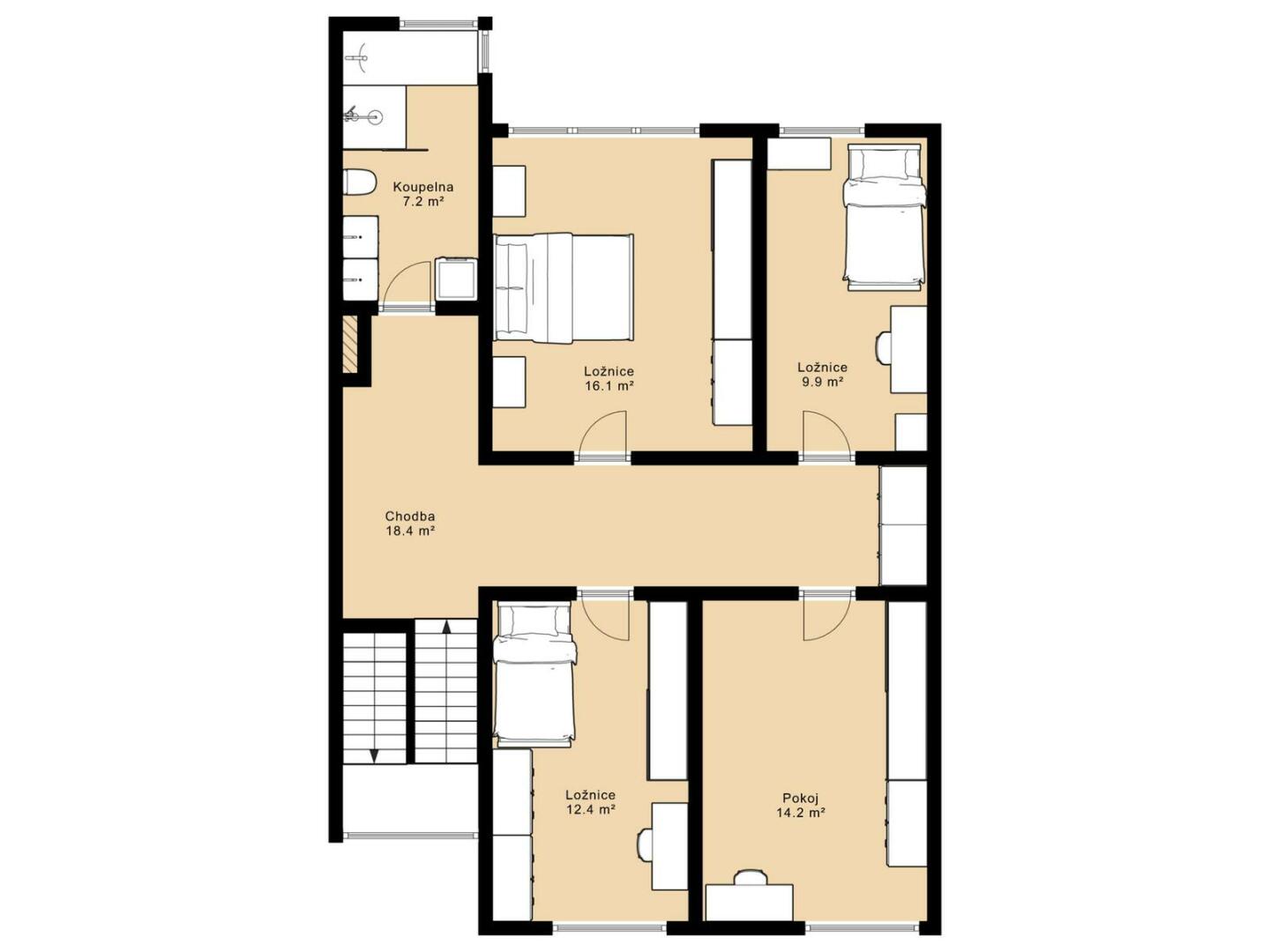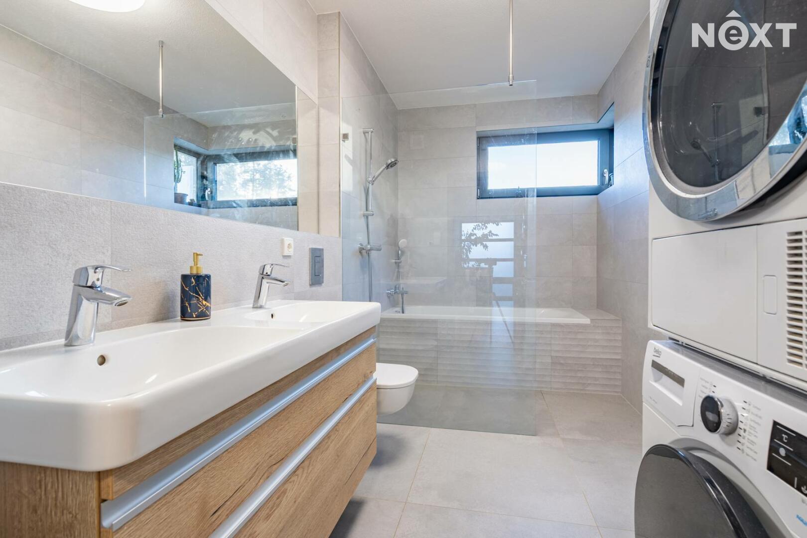 Dispozice domu je prakticky řešena a nabízí dostatek prostoru i soukromí pro větší rodinu. Součástí jsou dvě koupelny, což výrazně zvyšuje komfort každodenního bydlení – jedna koupelna se nachází v přízemí, druhá v horním patře. Dům je kompletně zařízený a připravený k okamžitému nastěhování.