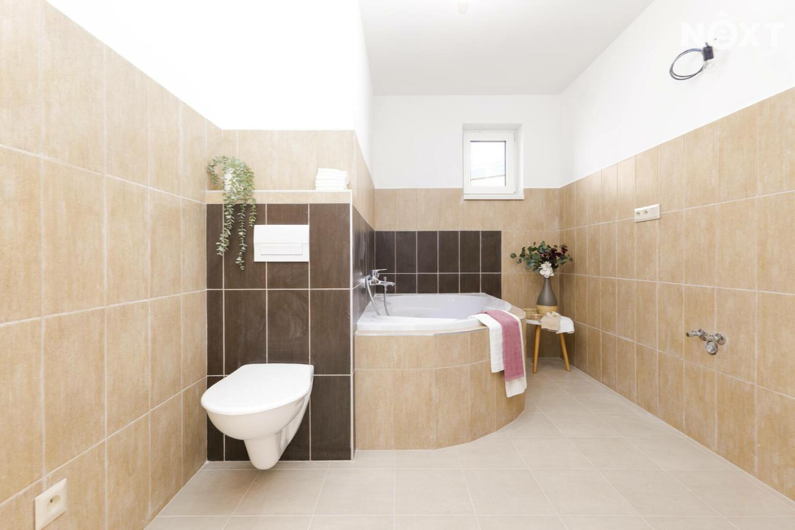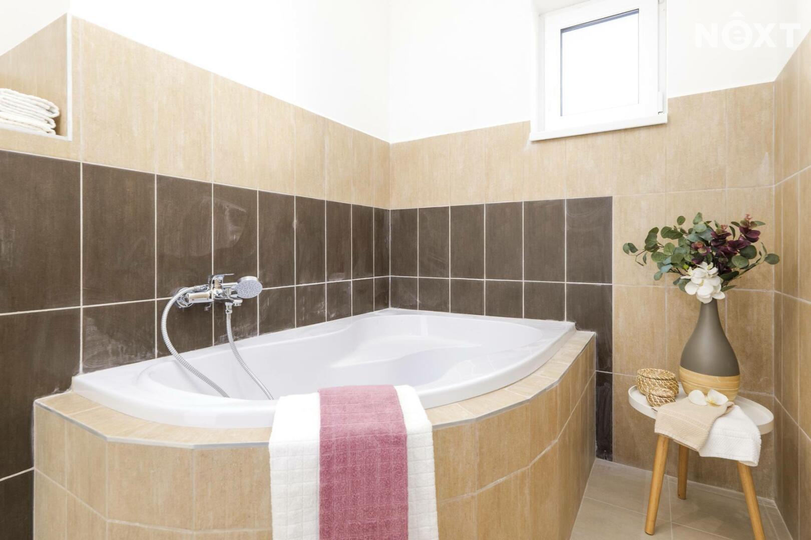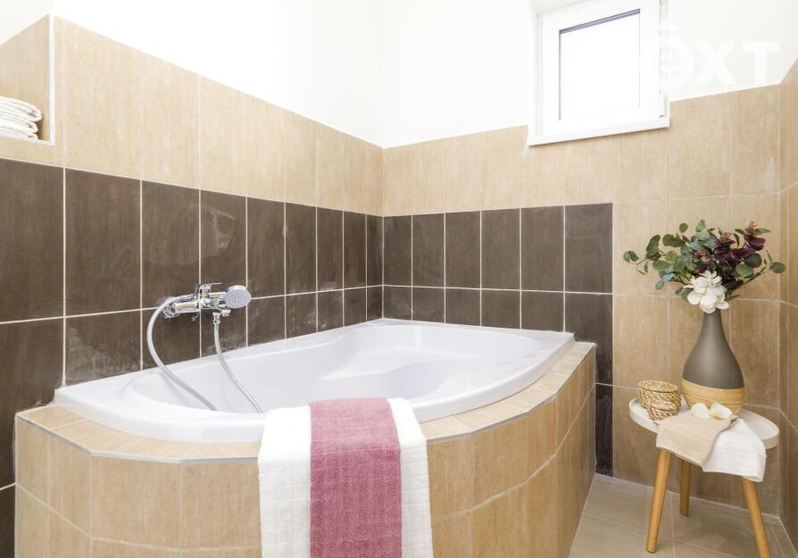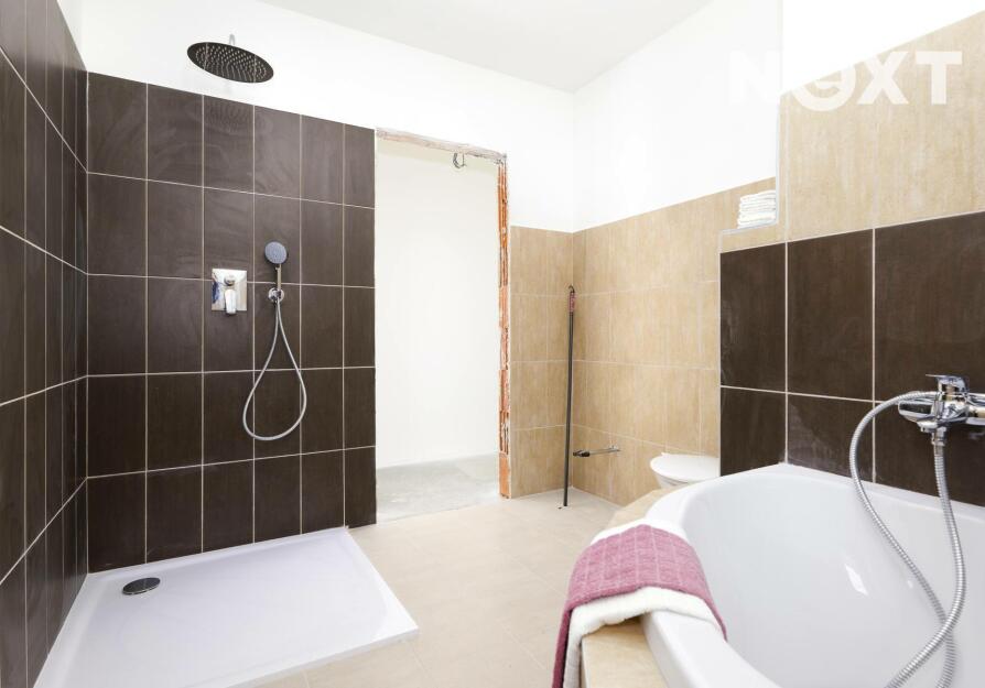 Z obývacího pokoje je přímý vstup na terasu (18 m²) a do zahrady, která nabízí dostatek prostoru pro relaxaci, rodinné chvíle i budoucí zahradní realizace podle vlastních představ. Klidovou zónu domu tvoří tři samostatné ložnice / pokoje (16 m², 16 m² a 9 m²), které poskytují dostatek soukromí jak rodičům, tak dětem či pracovně. Komfort bydlení podtrhuje koupelna o velikosti 12 m², vybavená sprchovým koutem i vanou, a samostatné WC (2 m²). Samozřejmostí je také technická místnost (4 m²).