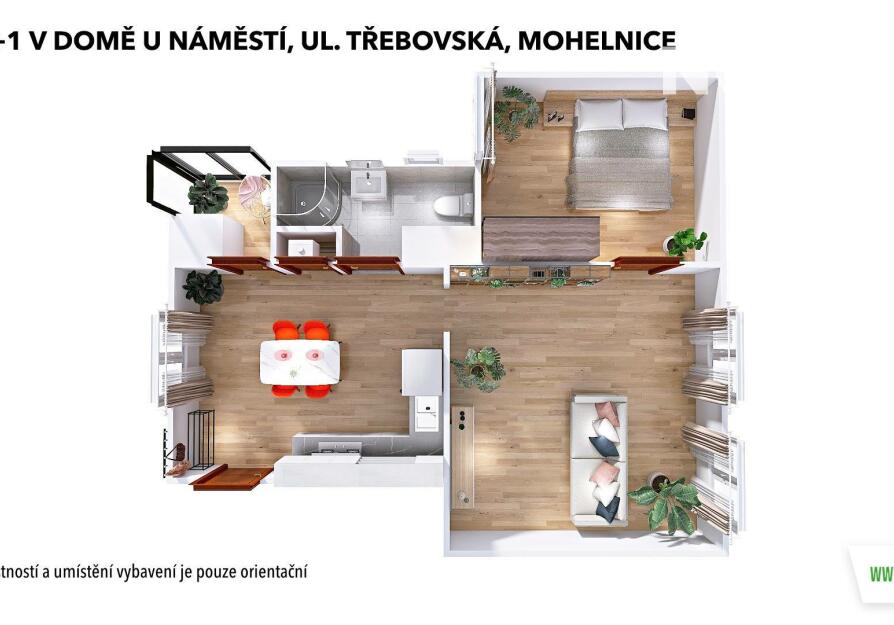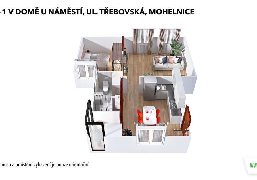 K dlouhodobému pronájmu nabízíme byt o velikosti 2+1 s výměrou 53 m2, který se nachází se v 2.NP rodinného domu. Okna bytu jsou orientována na východ a západ.