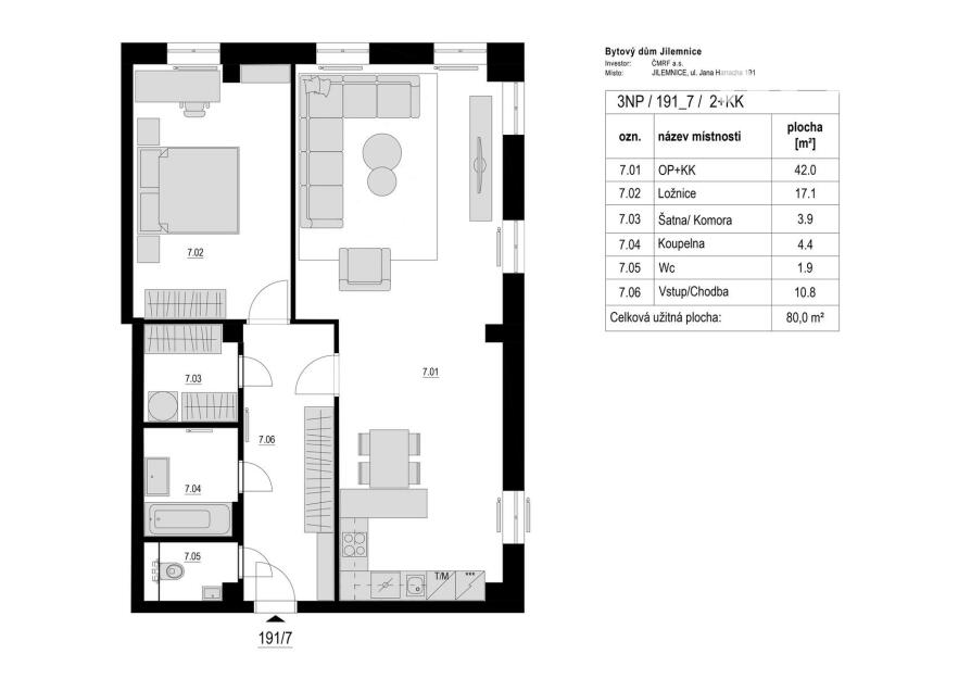 Dispozice bytu č. 191_7 (dle prohlášení vlastníka):