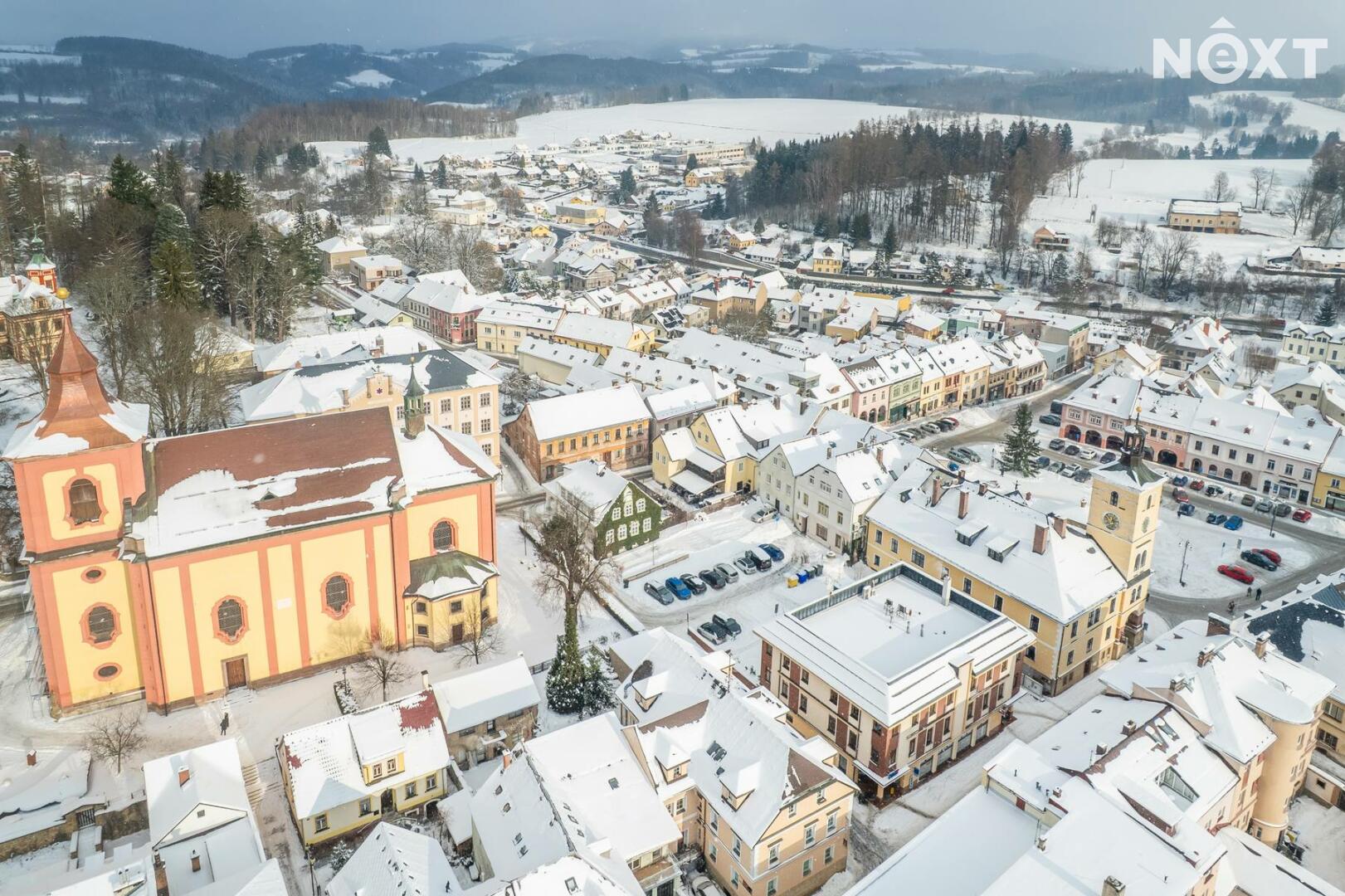 Prodej moderního bytu 2kk, 84 m², s parkovacím stáním v centru Jilemnice – pěší zóna ulice Jana Harracha.