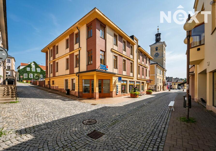 Prodej moderního bytu 2kk, 65 m², s parkovacím stáním v centru Jilemnice – pěší zóna ulice Jana Harracha.