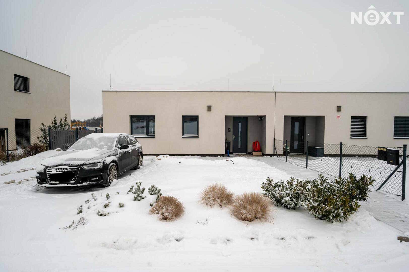 K domu náleží dvě prostorné dřevoplastové terasy, jedna s hliníkovou pergolou.