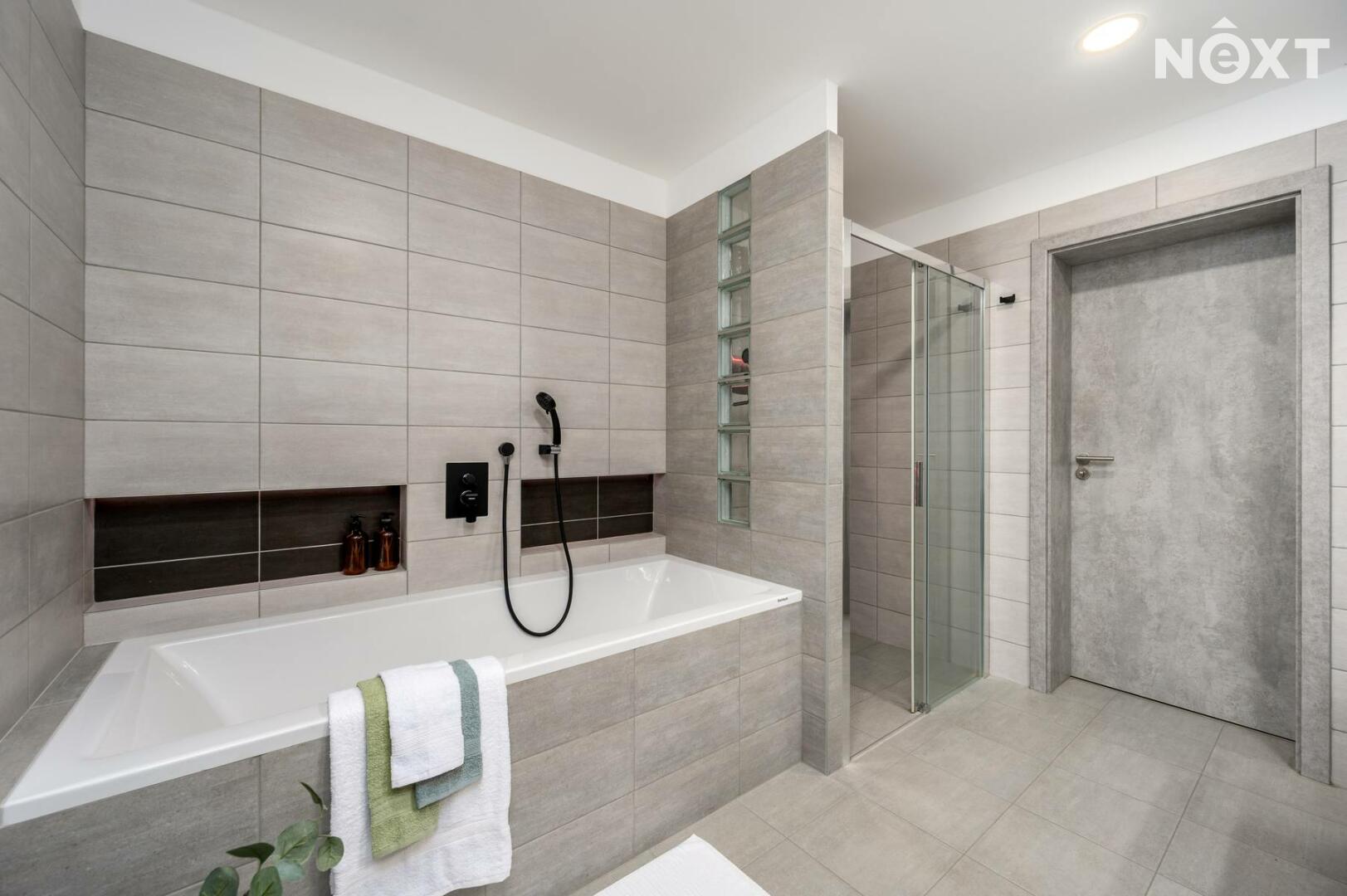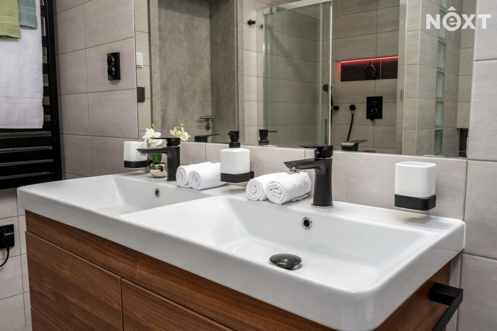 Vytápění zajištěno pomocí elektrického podlahového vytápění s chytrými termostaty, ohřev vody bojlerem 200 l Dražice.