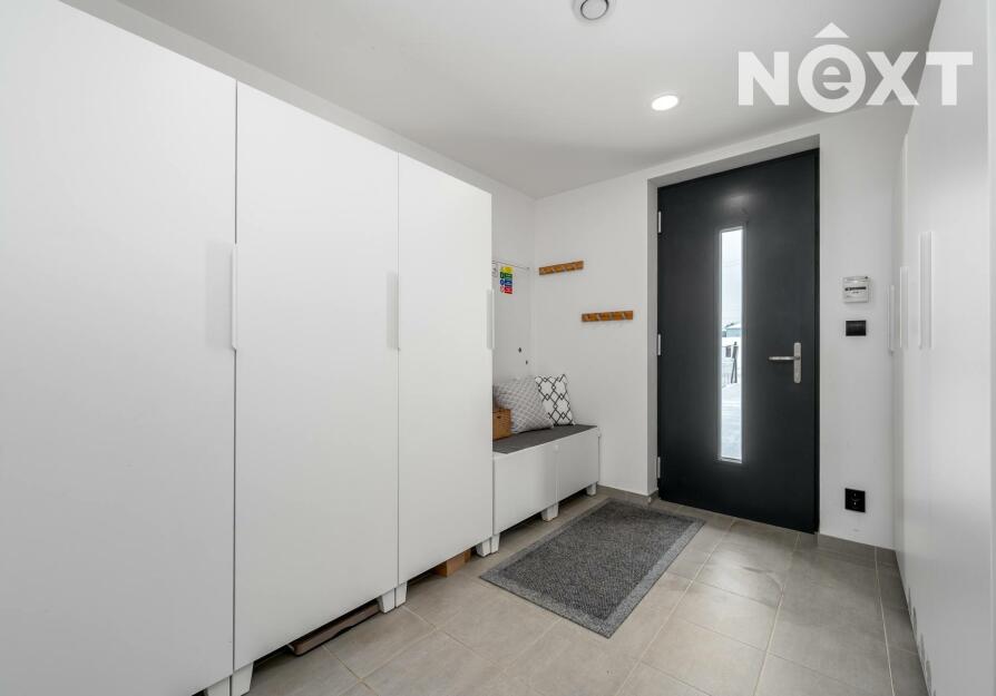 V domě je instalována rekuperační jednotka Zehnder ComfoAir Q 350, solární panely, předokenní vestavěné elektrické žaluzie.