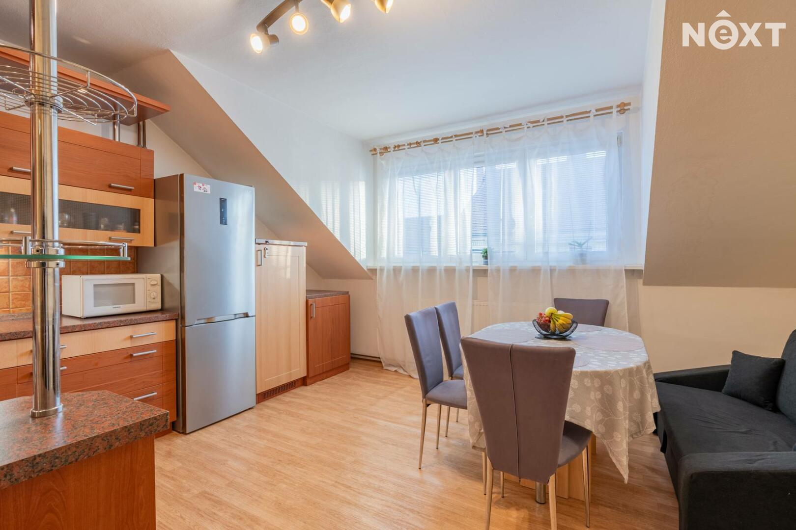 Nabízíme k prodeji prostorný byt 3kk s celkovou plochou 93 m2 v podkroví domu na adrese Skuherského 5, České Budějovice. Kuchyň je vybavena s vestavěnými spotřebiči. Najdete zde také dostatek prostoru pro jídelní stůl pro šest osob a praktický pracovní kout, ideální pro home office. Obývací pokoj je velmi útulný a nabízí několik zajímavých prvků, jako je stropní konstrukce pro zavěšené křeslo a příprava na instalaci krbu či kamen (vlastní komín je již připraven). Pro milovníky akvaristiky je zde i pevná konstrukce pro 200l akvárium, kterou lze snadno odstranit, pokud by nebyla potřeba. Ložnice s okny do zahrady a na míru vyrobeným nábytkem. Součástí je manželská postel s integrovaným čelem a nočními stolky, velká vestavěná skříň a komoda. Koupelna a toaleta jsou zcela nové, v moderním designu. Dům je zateplený a má plastová okna. Vytápění zajišťuje plynový kotel, přičemž rozvody topení i elektřiny jsou vedené v mědi. Díky již připravenému komínu je možné jednoduše přidat krb nebo kamna do obývacího pokoje. I přes to, že se jedná o podkrovní byt, nejsou zde klasická střešní okna, ale velké vikýře, které prostor krásně prosvětlují. K bytu náleží také prostorný sklep o výměře cca 8 m², který poskytuje dostatek úložného prostoru. Byt se nachází v žádané lokalitě Českých Budějovic s výbornou dostupností všech potřebných služeb. V blízkosti najdete obchody, restaurace, kavárny, školy a školky. Nedaleko jsou i parky, ideální pro relaxaci či sportovní aktivity. Veřejná doprava je snadno dostupná, s rychlým spojením do centra města. Tento byt je skvělou volbou jak pro rodinné bydlení, tak jako investiční nemovitost díky své poloze a kvalitnímu provedení. Byt je aktuálně pronajatý, což znamená, že můžete ihned začít vydělávat z nájemného, pokud byste jej pořídili jako investici. Zároveň je ale vhodný i pro vlastní bydlení – díky plnému vybavení je připraven k okamžitému nastěhování. Pro komunikaci uvádějte evidenční číslo zakázky N115766.