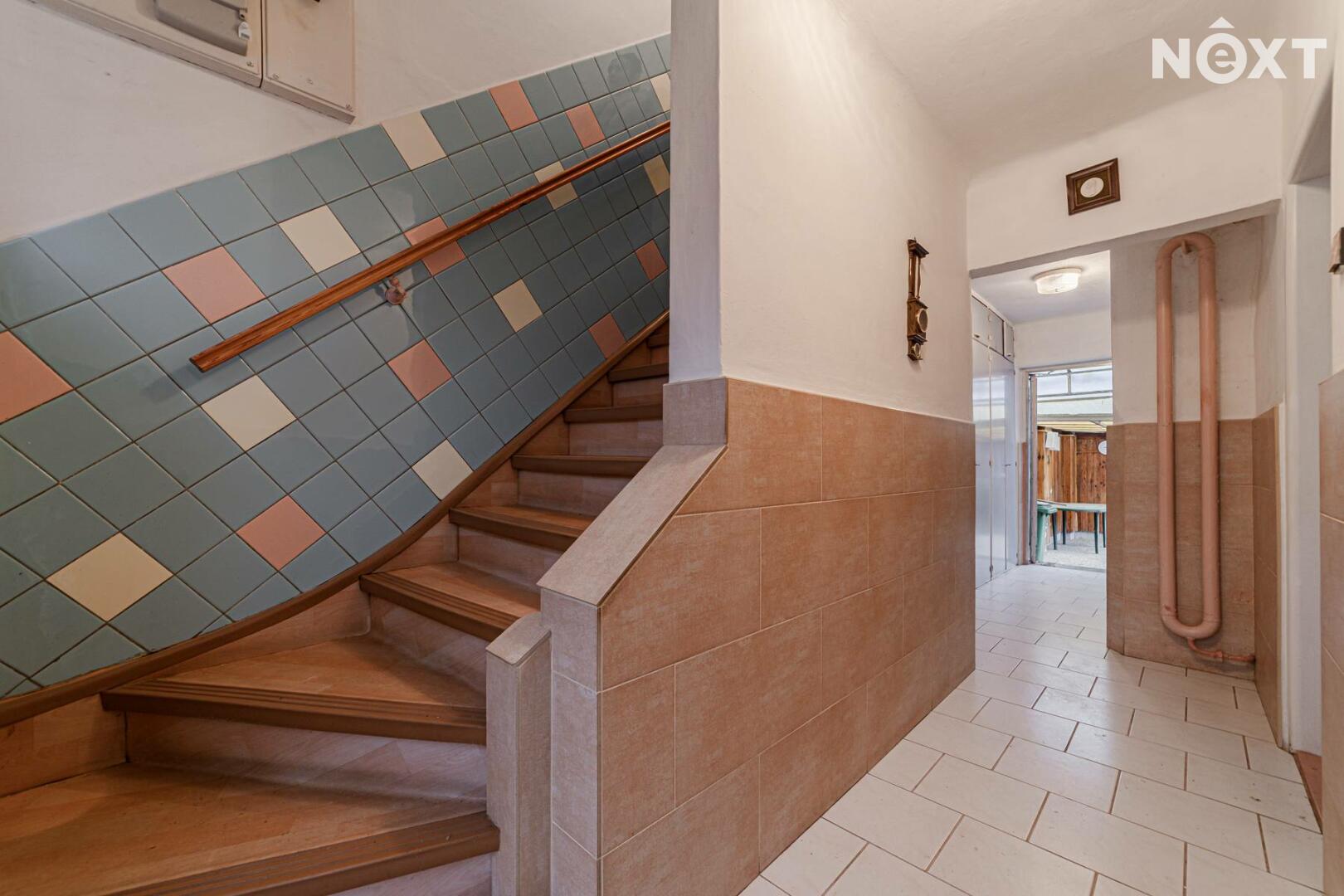 Interiér je v zachovalém, převážně původním stavu, což novým majitelům umožňuje dotvořit si prostředí podle vlastního vkusu. Základní uspořádání prostoru je přitom praktické a příjemné. Ve spodním patře se nachází vchod s prostornou chodbou, kterou se dostanete na zahradu, obývací pokoj, kuchyň, ložnice a koupelna s WC. V druhém patře je rovněž koupelna, kuchyňka a prostorný pokoj. Celá nemovitost je podsklepená, což je velká výhoda pro odkládání věcí a další zázemí. Ve sklepních prostorách se nachází plynový kondenzační kotel, kotel na tuhá paliva a čerpadlo na studniční vodu s tlakovou nádobou.