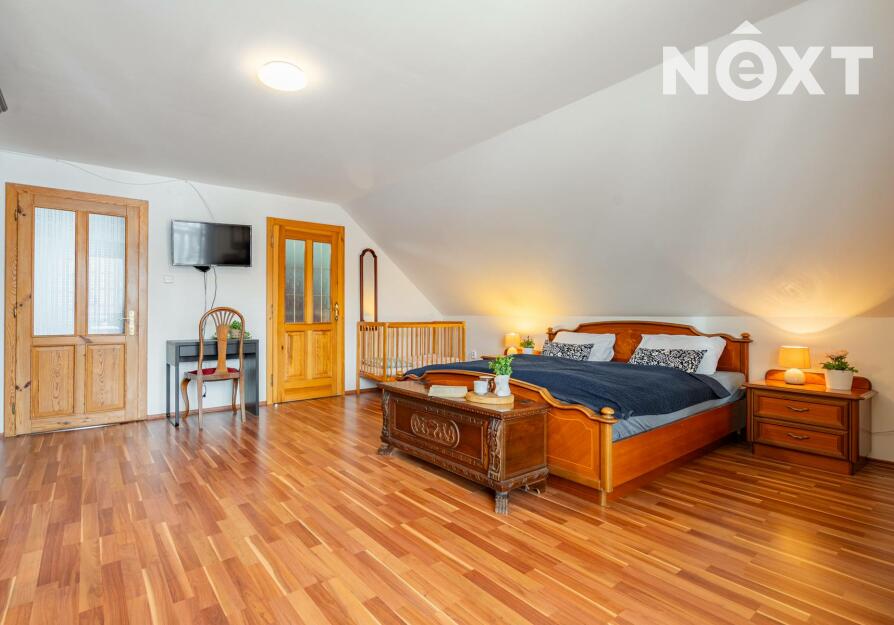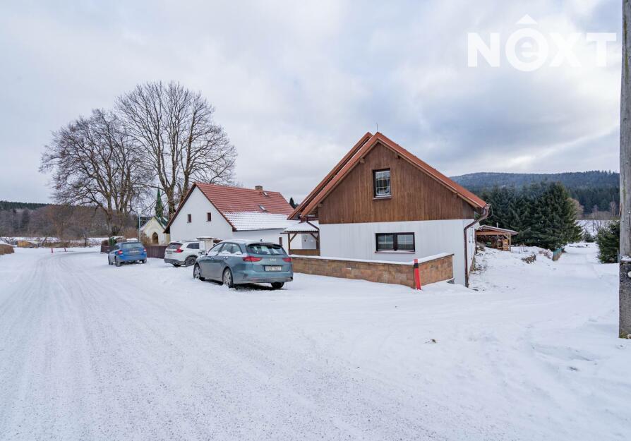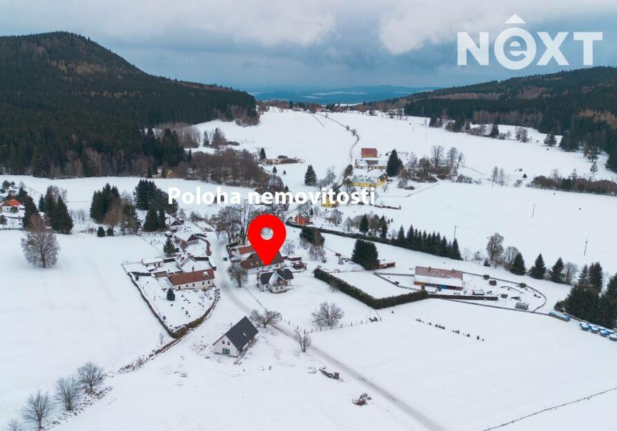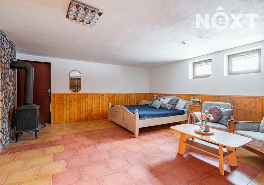 Nemovitost o celkové ploše 403 m² se nachází na rozlehlém pozemku o velikosti 2 756 m² a je v současné době plně funkční jako penzion s vlastním bydlením, což z ní činí mimořádně zajímavou příležitost jak pro vícegenerační rodinné bydlení, tak pro okamžité podnikání v oblasti ubytovacích služeb či investici s dalším rozvojovým potenciálem. Dům nabízí bytovou jednotku 3+kk o velikosti 117,3 m² určenou k vlastnímu bydlení, samostatnou bytovou jednotku 1+kk o velikosti 36,3 m² s vlastním sociálním zázemím. V prvním patře o velikosti 157,2 m² naleznete tři pokoje k pronájmu. Každý pokoj má vlastní sociální zařízení a k dispozici je společný kuchyňský kout. Celková kapacita objektu je až 22 osob. V suterénu se nachází technické zázemí, dostatek úložných prostor a možnost vybudování další bytové jednotky či dalších pokojů o velikosti 92,9 m², čímž lze objekt dále rozšířit a zvýšit jeho výnosový potenciál. Jedná se o zděnou stavbu napojenou na vodu z vrtané studny, odpad je řešen dvoukomorovou jímkou, vytápění zajišťují krbová kamna v hlavní obytné části a další kamna v suterénu, ohřev vody je řešen bojlerem, dům je tak provozně úsporný a částečně soběstačný.
