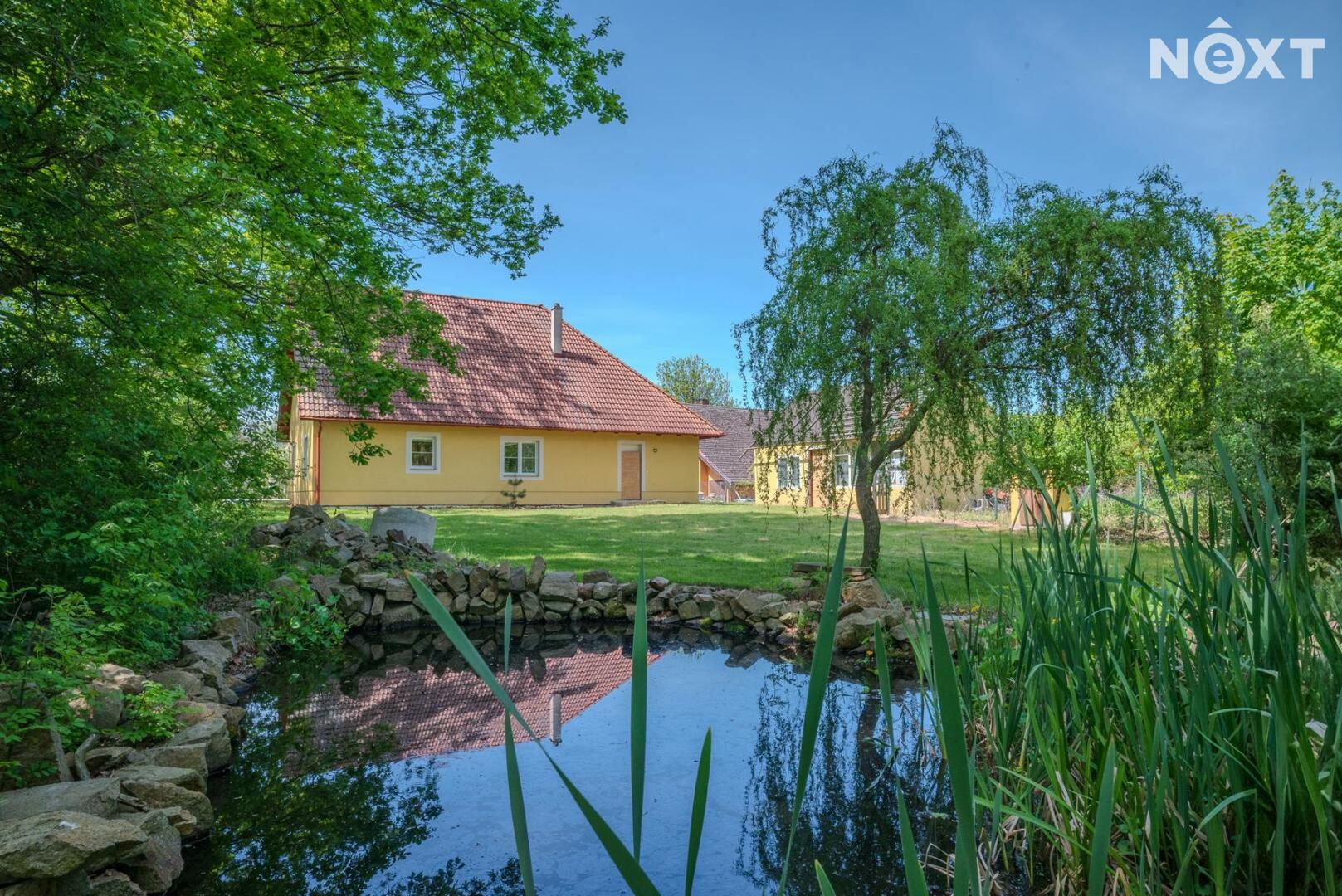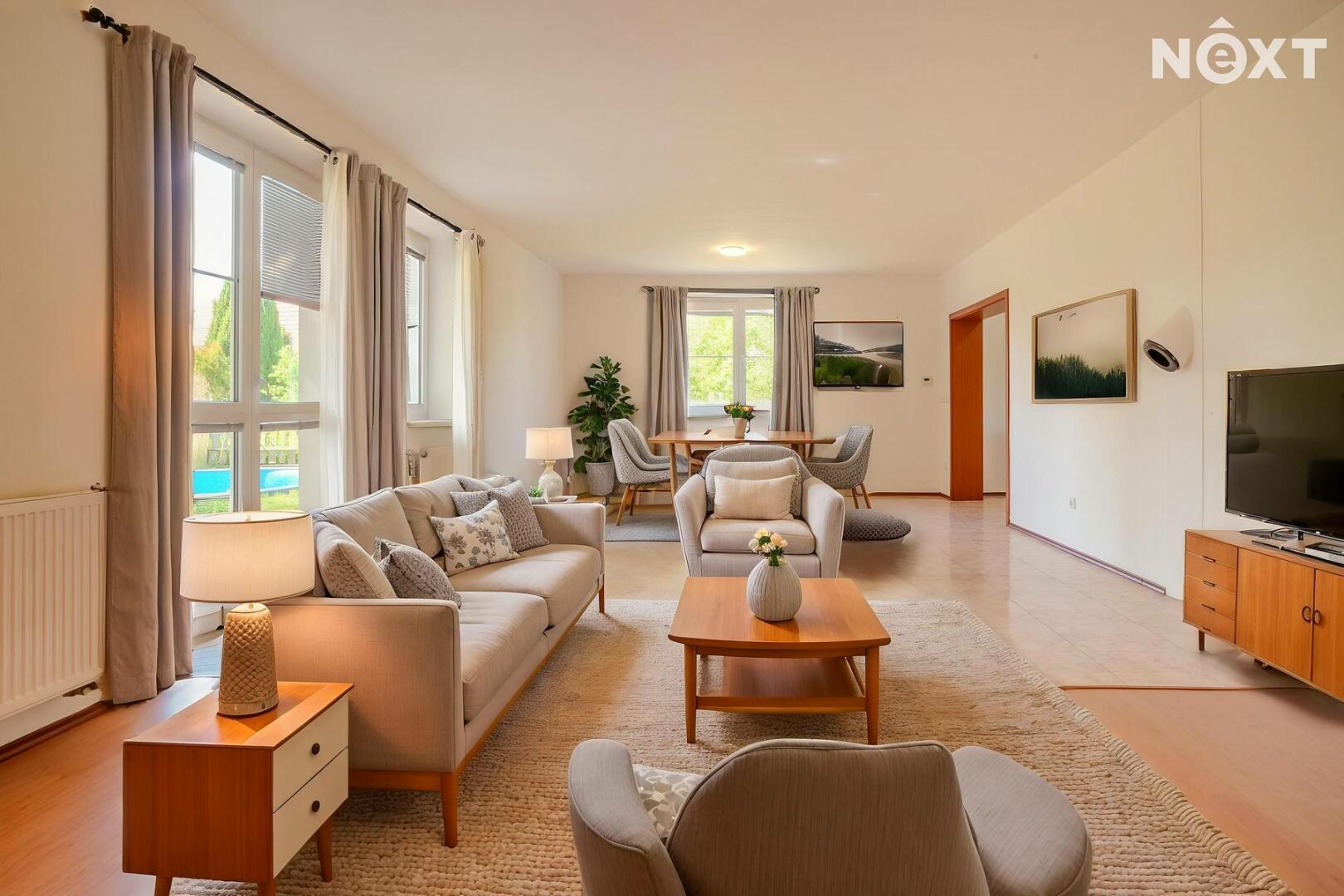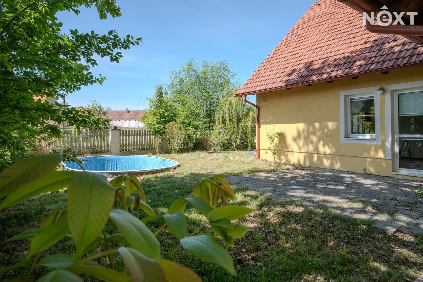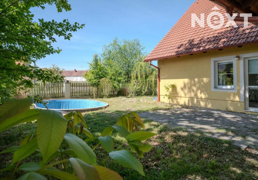 Na udržovaném pozemku se nachází bazén ideální pro letní osvěžení a také okrasné jezírko, které podtrhuje příjemnou atmosféru zahrady. Terasa navazující na obývací pokoj slouží jako ideální místo pro relaxaci, posezení s rodinou či přáteli.