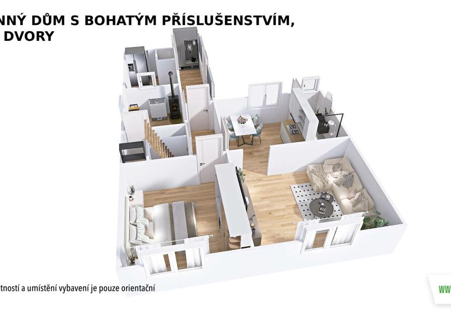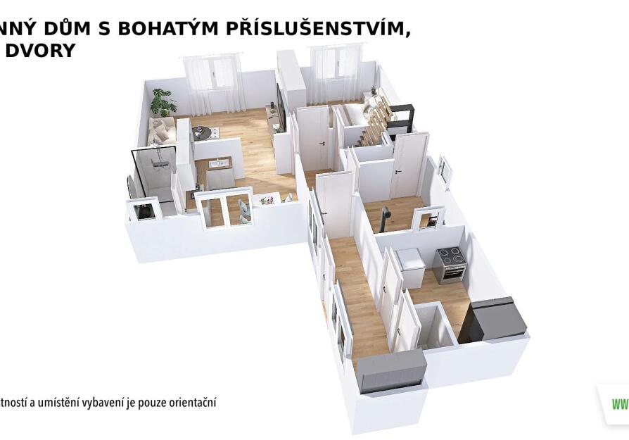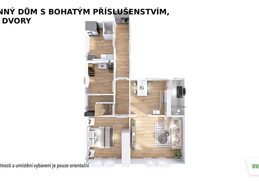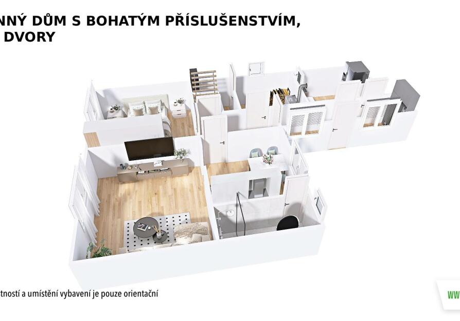 Součástí domu je také 2. nadzemní podlaží, které je nyní využíváno jako půda, avšak nabízí zajímavý potenciál pro vybudování dalších obytných místností.