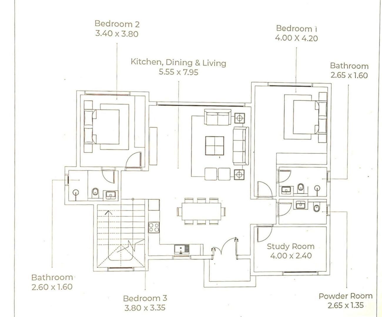 1 obývací pokoj s vybaveným kuchyňským koutem