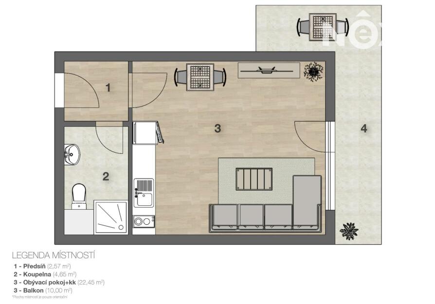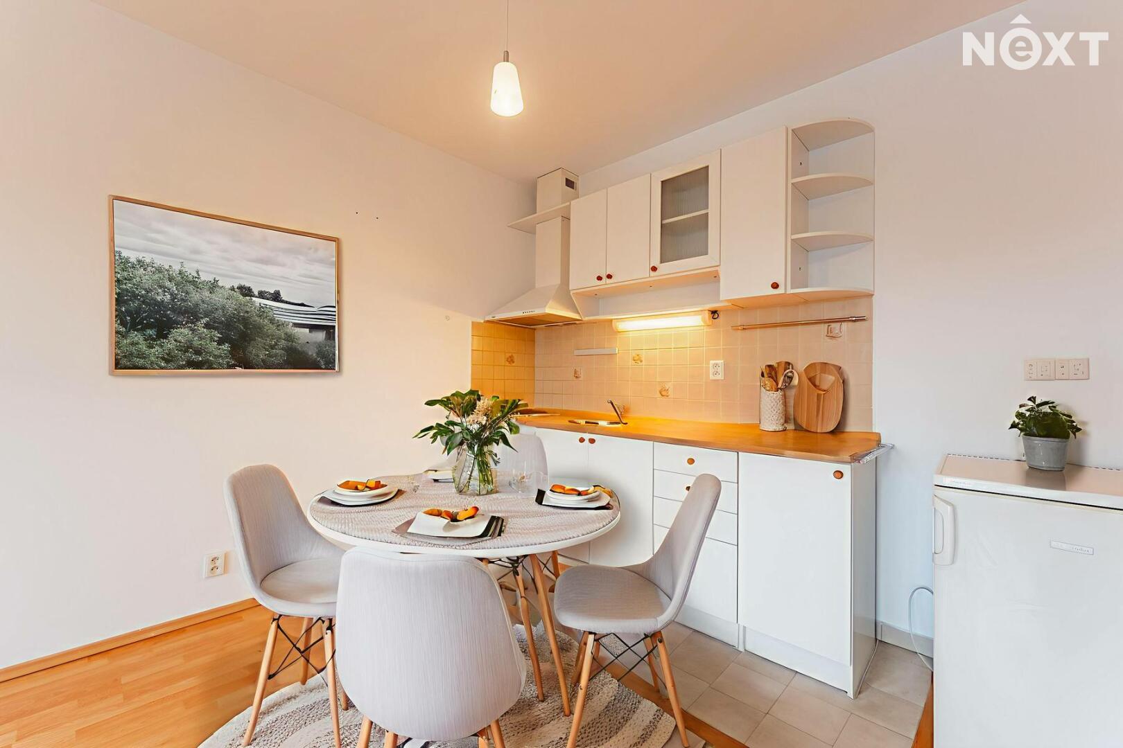 Útulný byt 1+kk, 30 m2 s balkonem 10,5 m2 čeká na nové majitele. Byt je ve velmi dobrém stavu. Nachází se ve 4.patře cihlového domu v Pražské Hostivaři. Je situován na konci chodby. Dispozice 1+kk s balkonem do L a je vhodný pro 1-2 osoby. Byt je připraven k okamžitému nastěhování nebo pronájmu. Z chodby bytu je vstup do koupelny se sprchovým koutem, toaletou a umyvadlem. Vedle umyvadla je příprava na pračku/sušičku. Na chodbu navazuje obytná místnost 25 m2, kde je i kuchyňský kout. Z této místnosti se vchází na balkón 10,5 m2. Okna v domě jsou dřevěná, špaletová. Podlaha v obytné místnosti je laminátová, v chodbě a koupelně je dlažba.Dům disponuje dvěma výtahy, osobním a nákladním. V přízemí domu je umístěna kolárna s kamerovým dohledem. Vytápění domu zajišťuje centrální plynová kotelna. Ve vnitrobloku domu je omezené množství parkovacích míst, které není nijak rezervováno. Ostatní parkovací místa jsou v okolí domu. Dvě minuty chůze od domu jsou tramvajové a autobusové zastávky. Jezdí zde tramvaje číslo 5,22 a 26. Šest minut tramvají od domu se nachází vlakové nádraží Jižní Město. Za domem je Lidl, ostatní občanská vybavenost a nákupní možnosti jsou v dojezdové vzdálenosti autem i MHD. Náklady na bydlení činí 3.570 Kč, z toho 1.500 Kč je do fondu oprav. Stěhování je možné ihned. Neváhejte s domluvením prohlídky, těším se na viděnou! Pro komunikaci uvádějte evidenční číslo zakázky N115853.