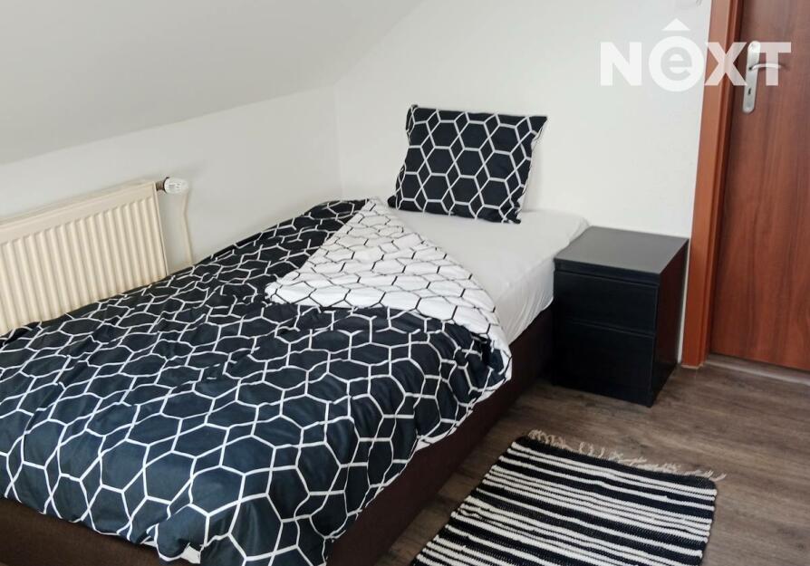 Pronájem podkrovního bytu bytu 2+kk, 45 m2. Byt je plně vybaven - včetně povlečení, nádobí a dalších drobností, lze tedy pohodlně bydlet od první chvíle. V bytě jsou 2 boxové postele (stejný typ je často používaný v hotelech), které lze snadno přisunout k sobě a vytvořit z nich jednolůžko. Byt tedy může být vhodný pro firemní pracovníky, ale i pro pár. Ideálně pro 2 osoby - bez dětí. Vratná jistota 15.000,- Kč. Provize RK 7.865,- Kč. Nájemné: 6.500,- Kč. Náklady na užívání bytu: 7.500,- Kč (internet, O2 TV, vodné, stočné, vytápění a ohřev vody, elektřina, úklid společných prostor, odvoz odpadu...). Celkem 14.000,- Kč měsíčně. Parkování před domem. Volné ihned. Prohlídky dle dohody. Dlouhodobý pronájem. Pro komunikaci uvádějte evidenční číslo zakázky N115857.