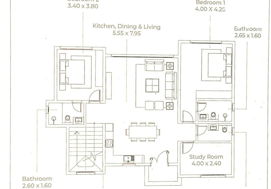 1 obývací pokoj s vybaveným kuchyňským koutem