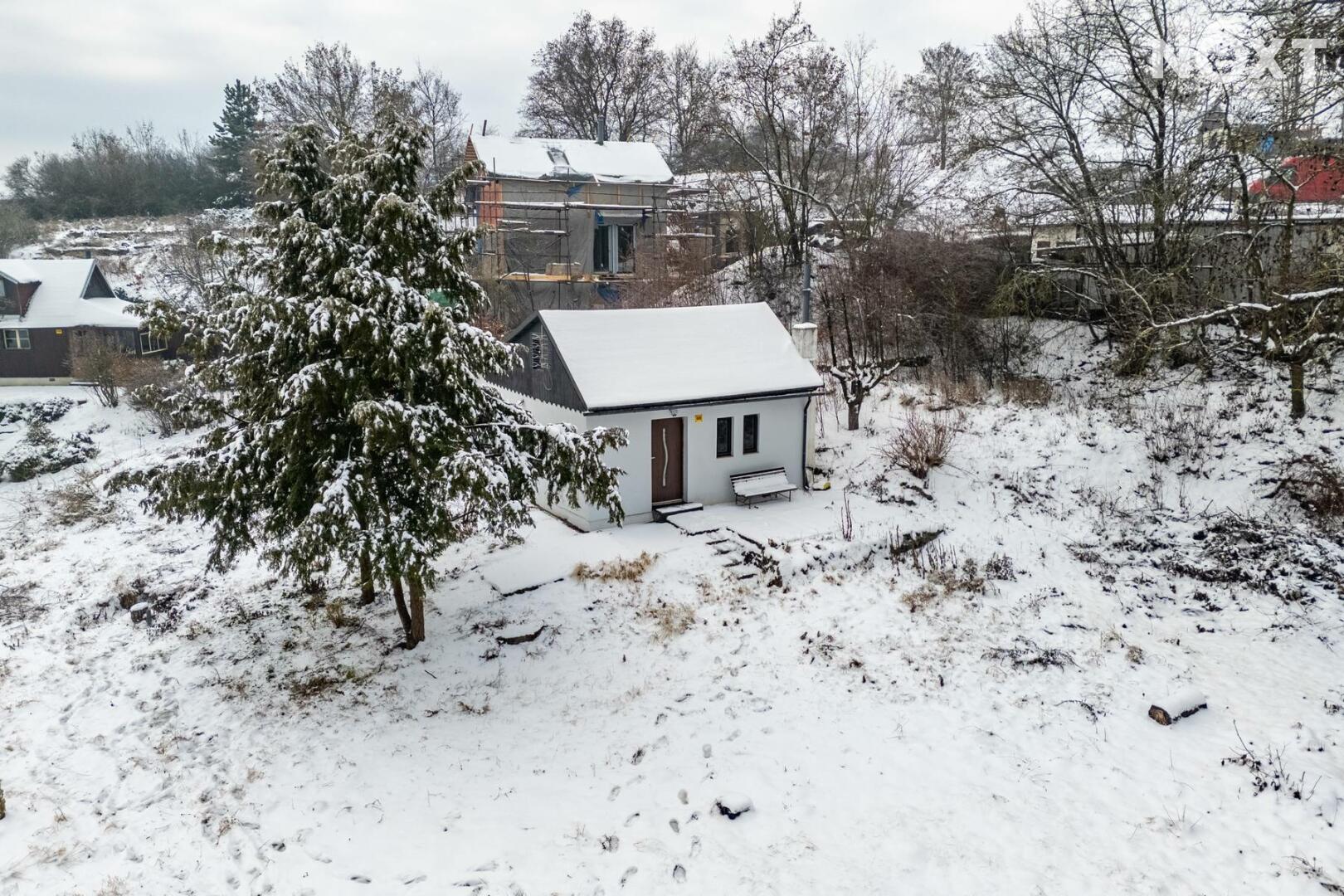 Chata stojí na pronajatém pozemku s možností pokračování v nájmu, případně je zde i možnost pozemek odkoupit. Na pozemku je dostatek prostoru pro grilování či posezení u ohniště.