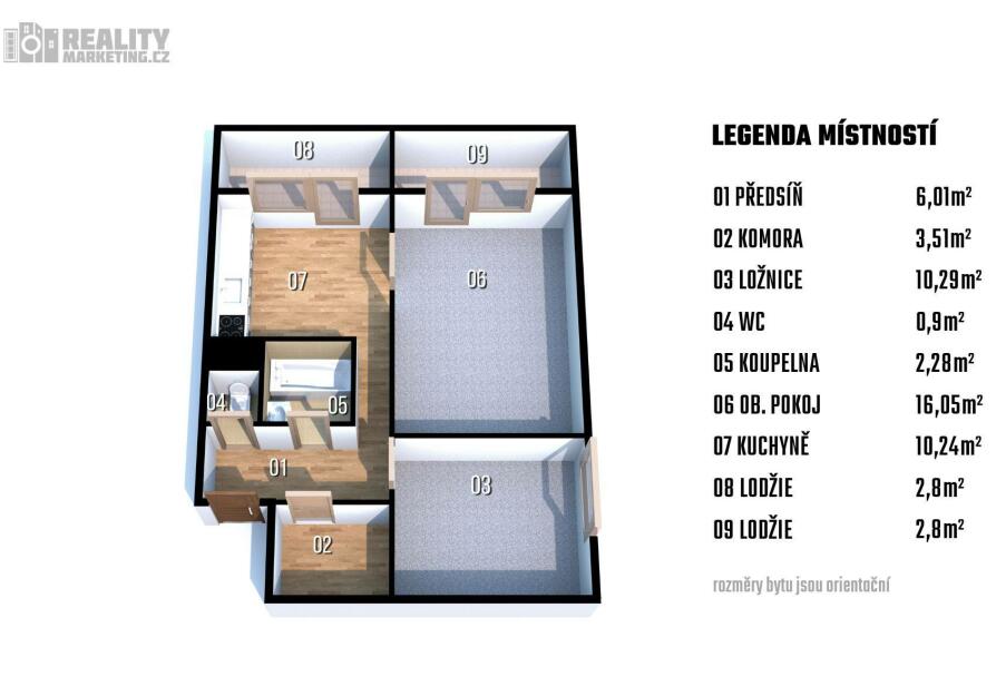Exkluzivně nabízíme k prodeji nově zrekonstruovaný byt 2+1 s užitnou plochou 57,37 m2 v obci Mokrá-Horákov, části Mokrá. Byt je v osobním vlastnictví a nachází se ve 3.NP bytového domu s novým výtahem. Samostatný bytový dům prošel celkovou revitalizací, má novou střechu, nové rozvody sítí, plastová okna, zateplení, fasádu a vlastní plynovou kotelnu. Součástí bytu je sklep v přízemí a dvě lodžie přístupné z kuchyně a z obývacího pokoje. Ke společnému užívání jsou přízemní prostory kolárny, kočárkárny a sušárny.