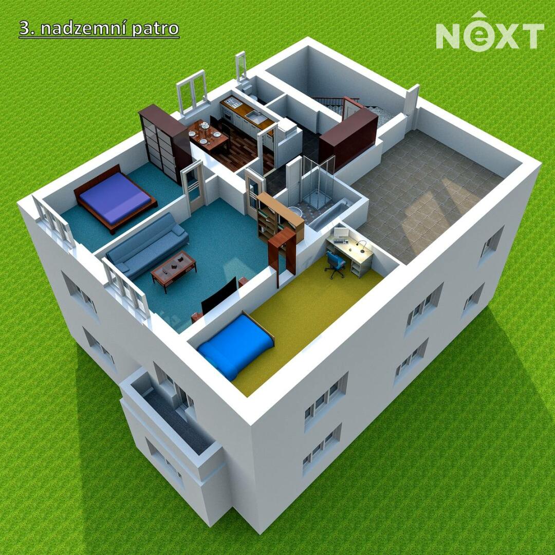 Nabízíme k pronájmu velmi atraktivní byt o dispozici 2+1 s podkrovním pokojem, umístěný ve 3. nadzemním podlaží rodinného domu se zahradou v klidné a vyhledávané lokalitě Hradce Králové, ulice Oskara Nedbala.