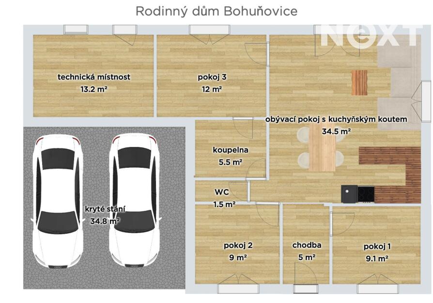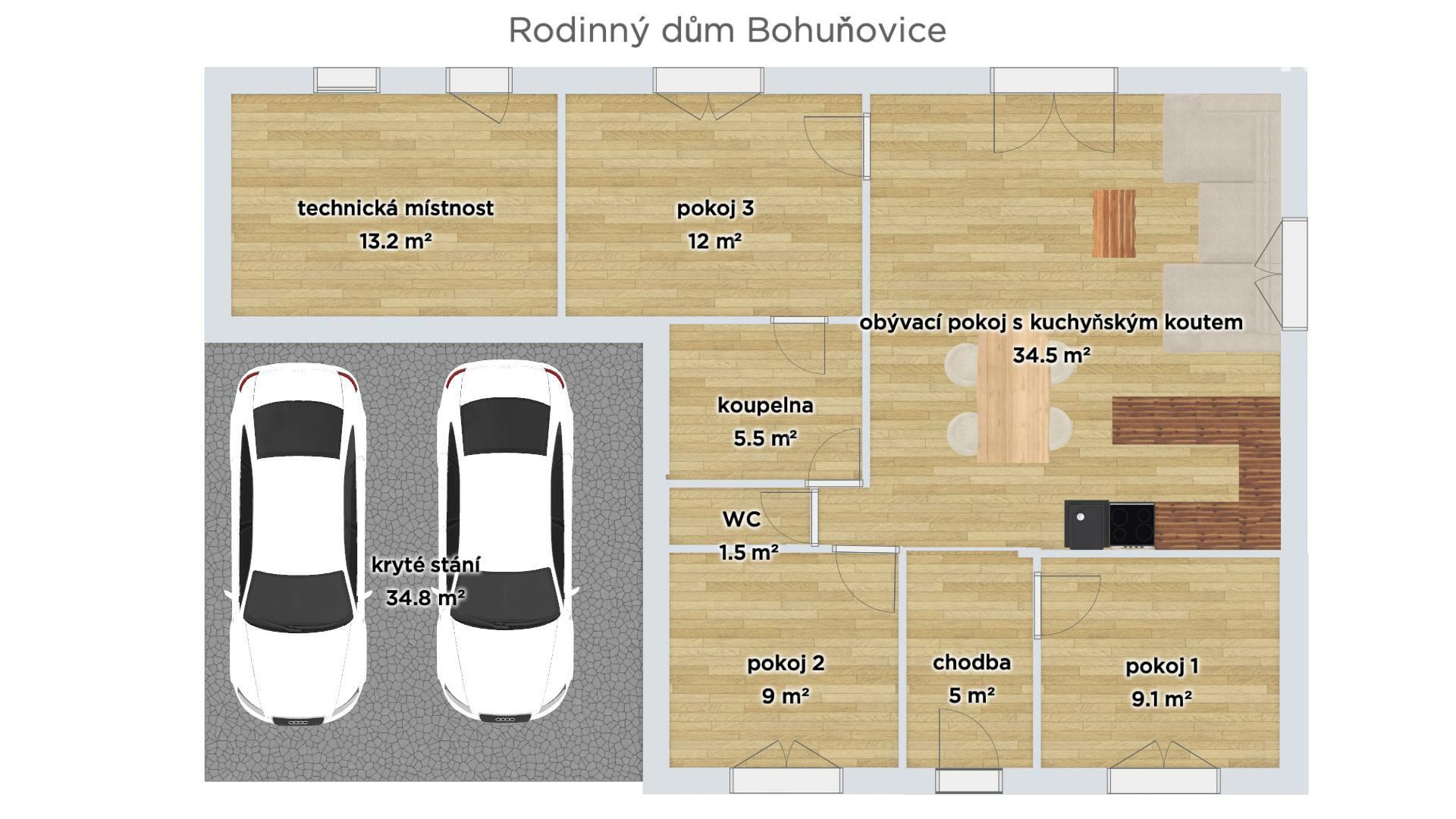 Bohuňovice jsou klidná obec s kompletní občanskou vybaveností – škola, školka, zdravotní středisko, pošta, aquapark, kino, restaurace i obchody, to vše dostupné pěšky za pár minut.