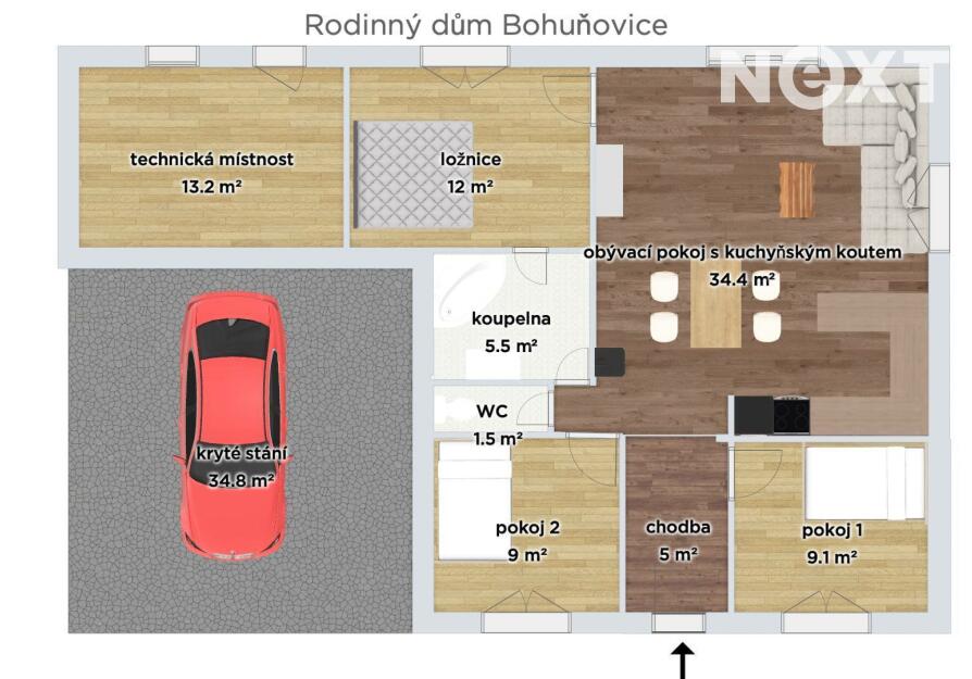 Tento útulný dům s bazénem, s dispozicí 4+kk vás překvapí svou praktičností i možnostmi: