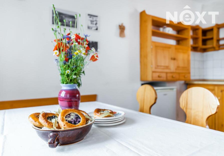 Nemovitost je v dobrém stavu a může sloužit jako trvalý domov nebo rekreační chalupa. Díky svému umístění v krásné krajině je ideální pro víkendové pobyty a prázdniny. Interiér domu vyzařuje typicky selskou atmosféru, kde dominuje dřevo a přirozené světlo. Dům je zařízený a připravený k okamžitému nastěhování. V přízemí se nachází kuchyně, obývací pokoj, koupelna, dvě WC a sauna. V útulném podkroví najdete dva další pokoje.