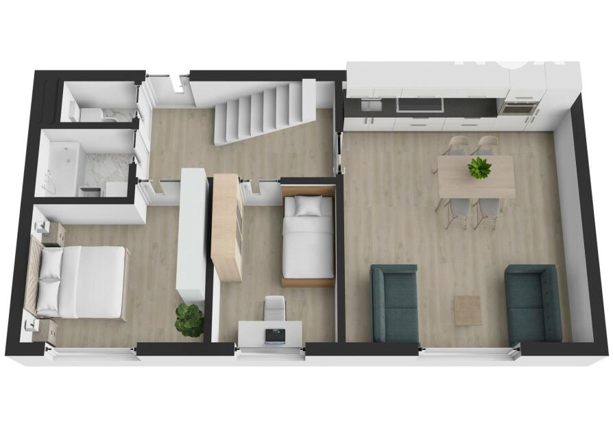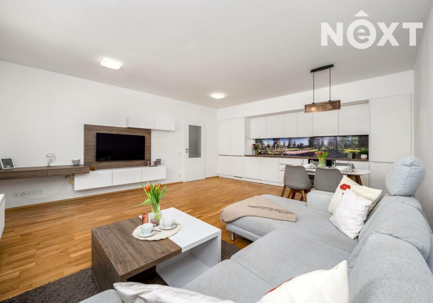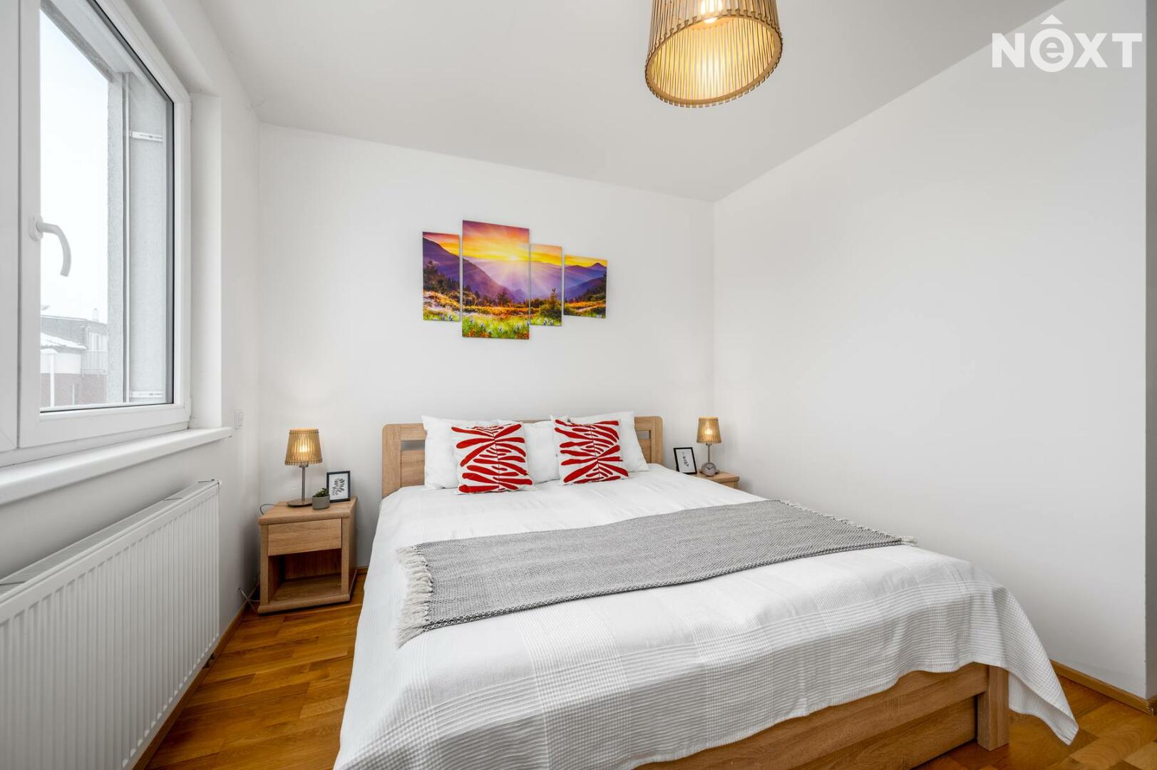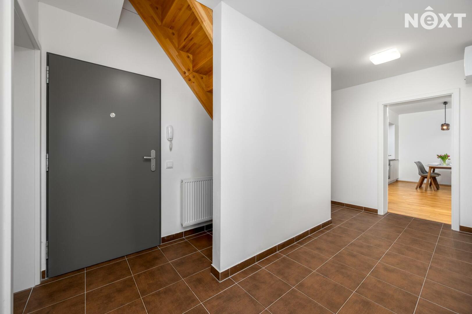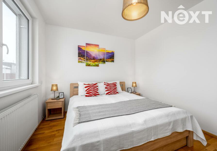 Samotný byt je promyšlený tak, aby fungoval v běžném rodinném provozu. Světlý obývací prostor s kuchyní tvoří přirozené centrum domova, kde se potkáváte, jíte i odpočíváte. Dvě samostatné ložnice dávají každému členu rodiny vlastní klidný prostor – dětem na hraní i učení, rodičům na odpočinek. Dřevěné podlahy dodávají interiéru teplo, elektrické předokenní žaluzie zase pohodlí a kontrolu nad světlem i soukromím. Dům z roku 2019 je ve velmi dobrém stavu, vytápěný tepelným čerpadlem a v energetické třídě C – provozně rozumný i do budoucna.