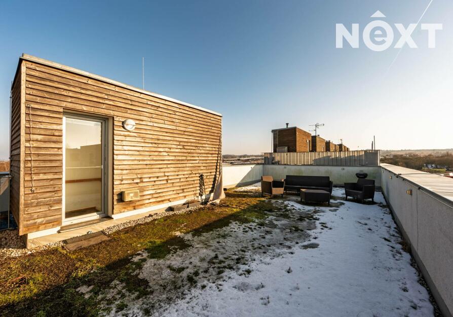 Ráno otevřete dveře na 61 metrovou zatravněnou střešní terasu, děti vyběhnou bosky na trávu a vy si v klidu uvaříte kávu. Přesně tenhle pocit nabízí byt 3+kk v Úvalech na Škvorecké, který kombinuje prostor, soukromí a každodenní praktičnost rodinného bydlení – jen půl hodiny od centra Prahy a s výborným vlakovým spojením.