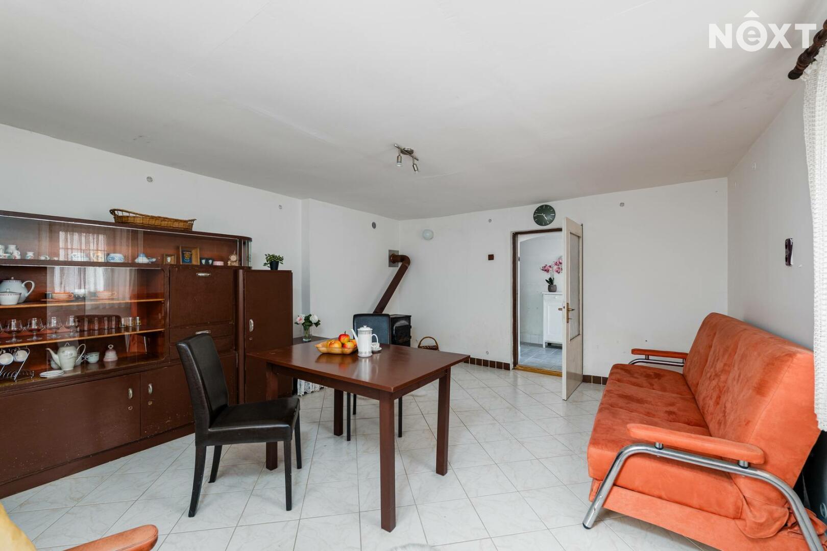 Chalupa o dispozici 2+1 s garáží a dílnou o zastavěné ploše 139 m², má praktické a funkční uspořádání, které umožňuje okamžité rekreační využívání a zároveň nabízí dobrý základ pro případné úpravy na trvalé bydlení. V přízemí se nachází prostorný obývací pokoj s krbovými kamny, který může sloužit jako hlavní obytný prostor domu. Na něj navazuje kuchyně, koupelna s WC a bojlerem na ohřev vody.