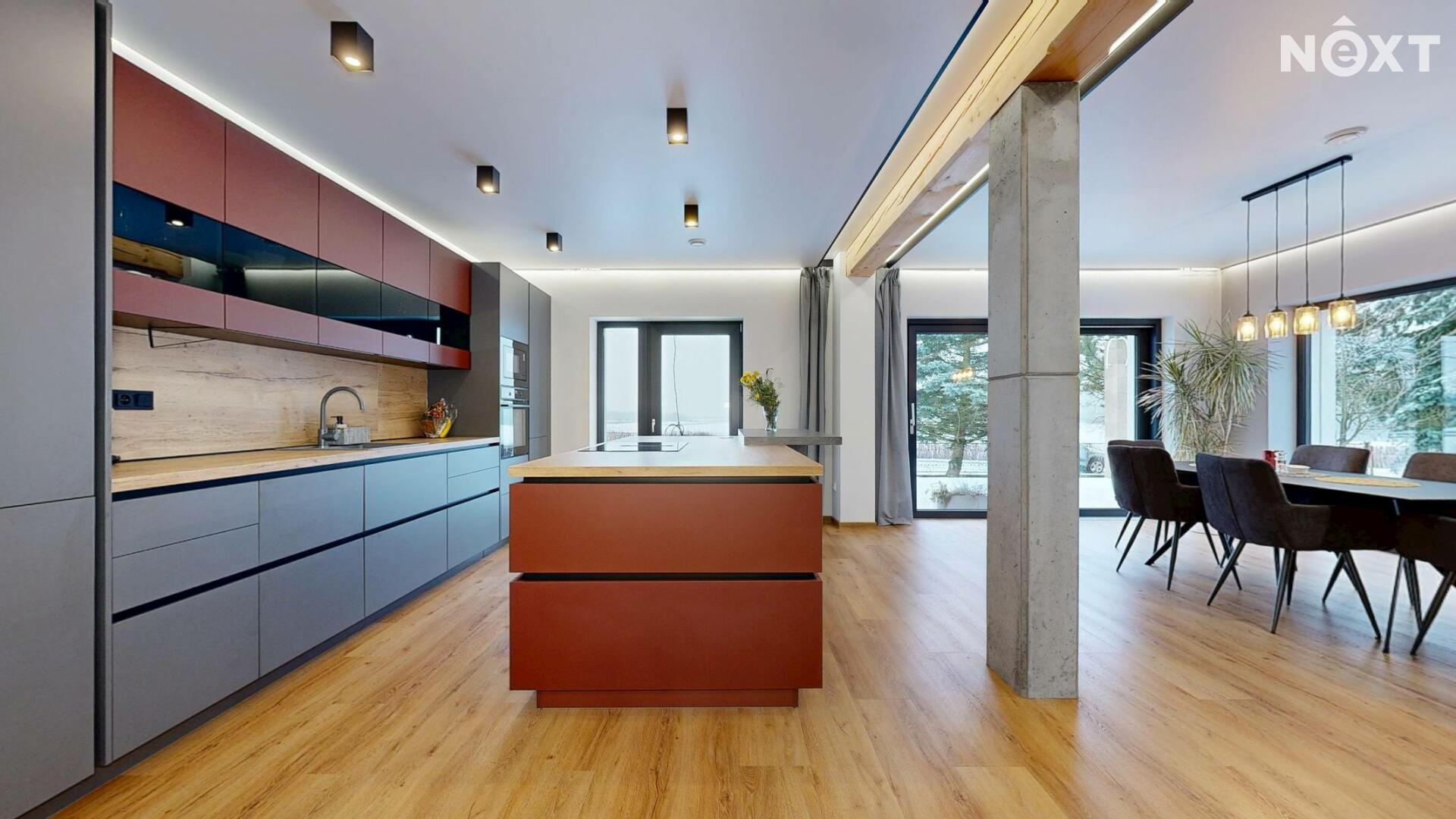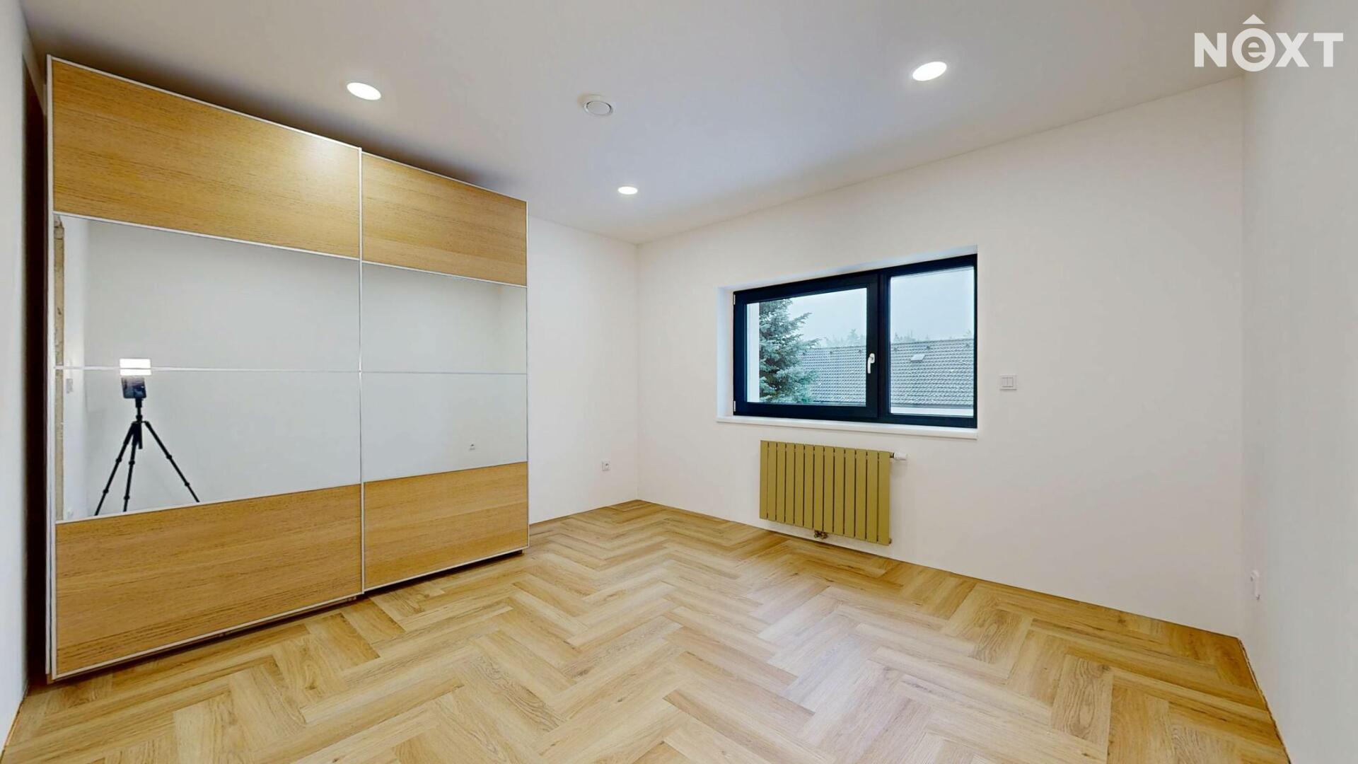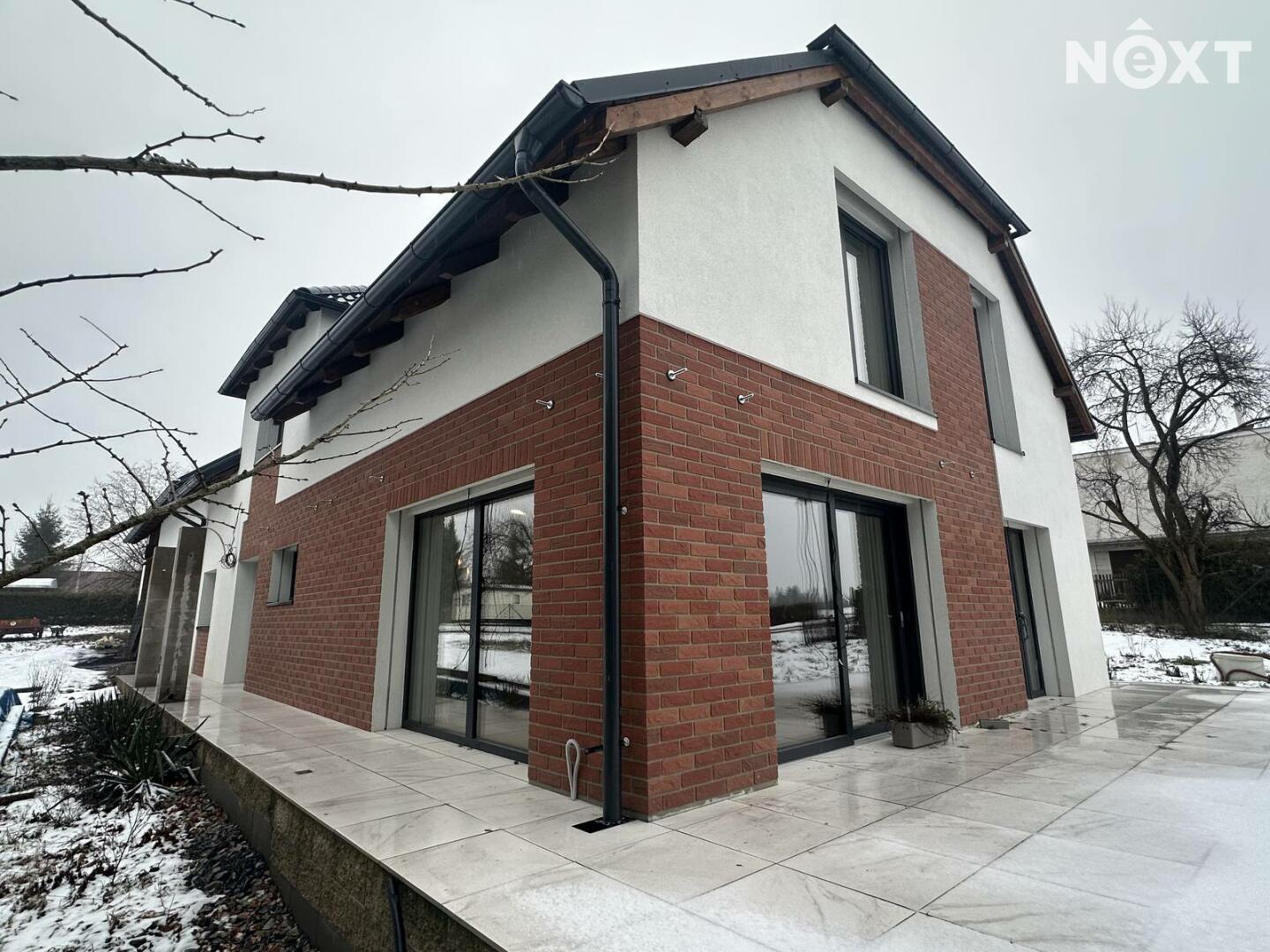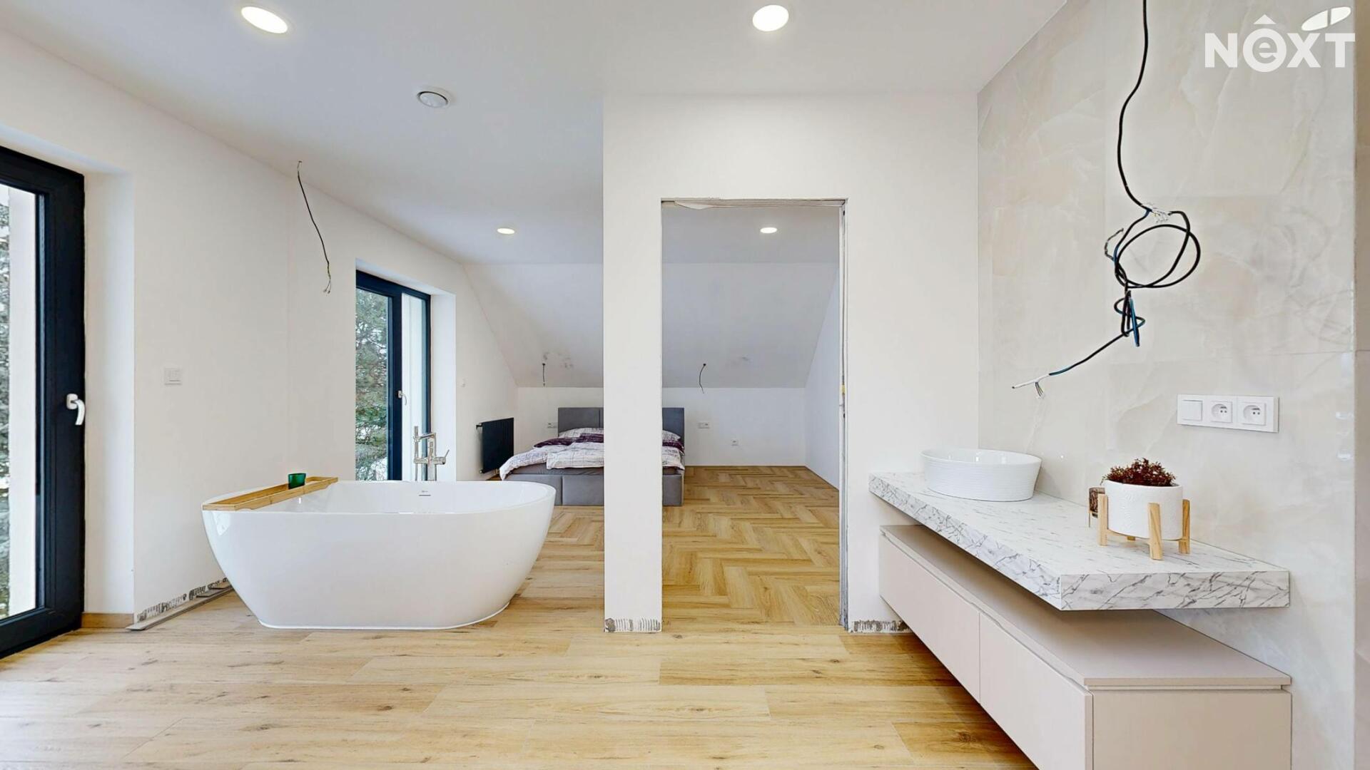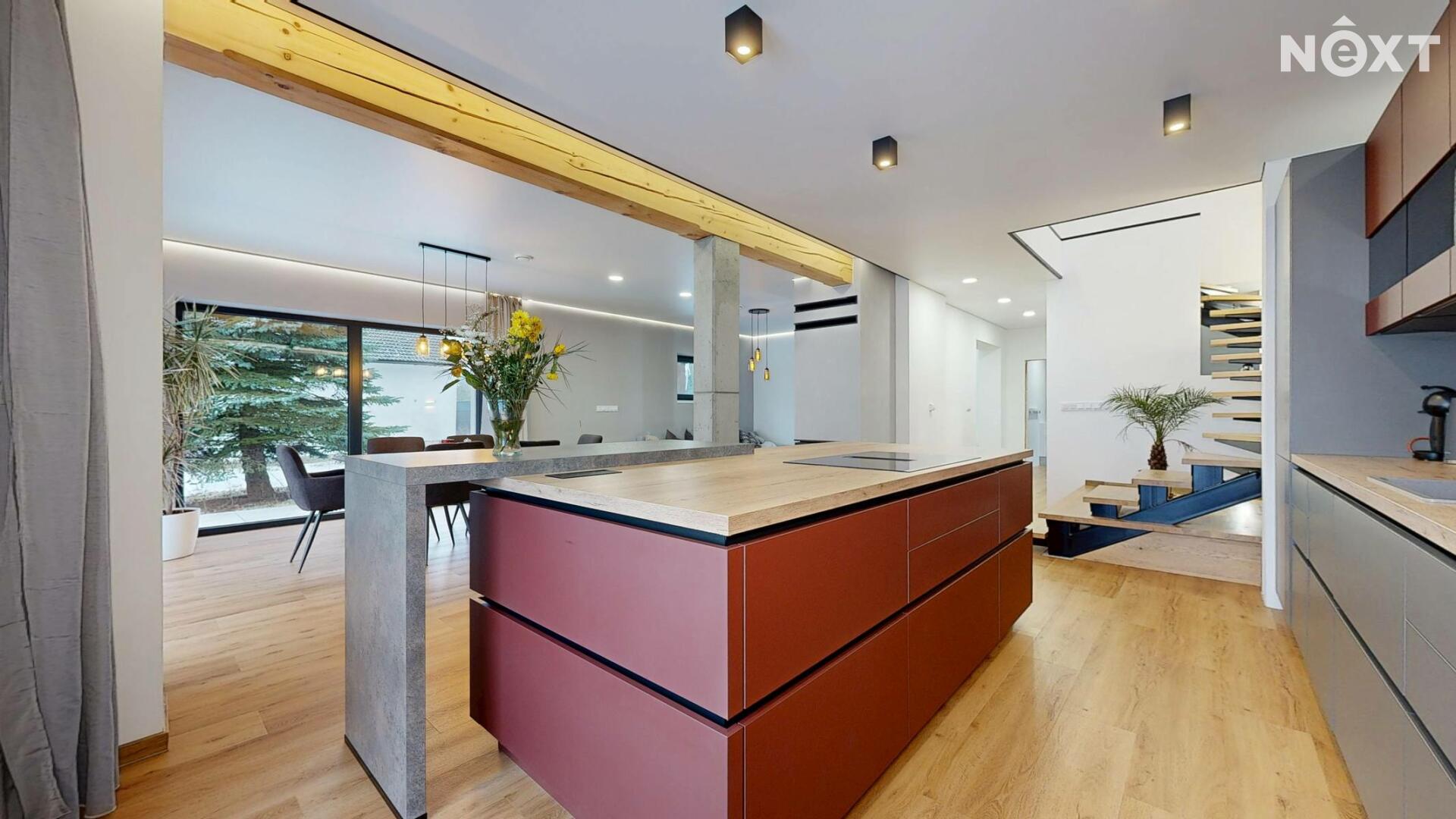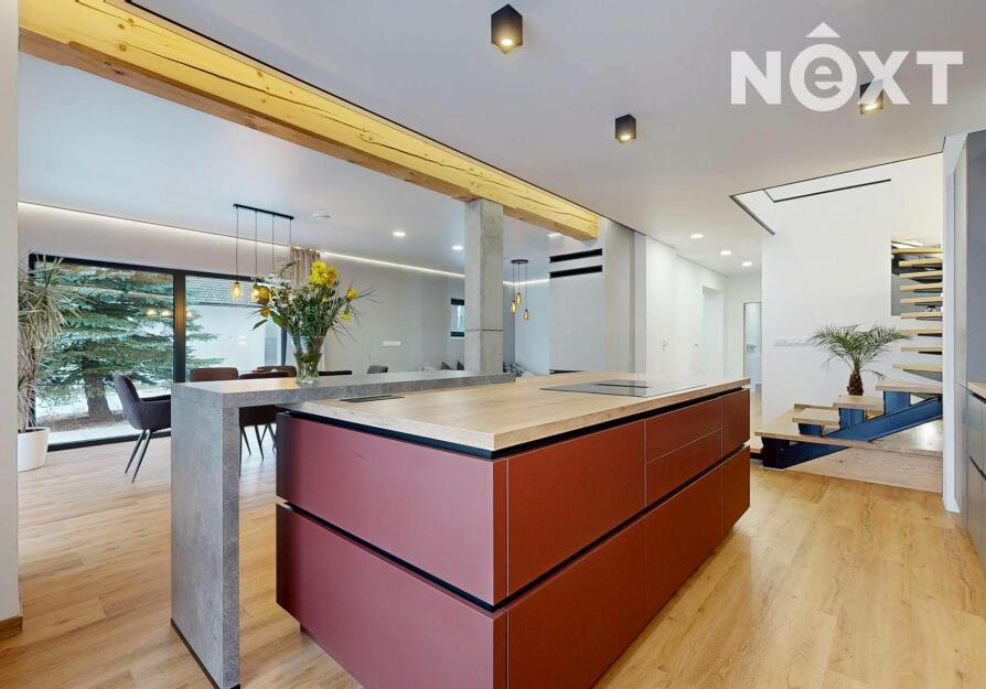 Interiér je vzdušný, vkusný a sladěný do moderního stylu, kde každý detail dává smysl. Dvě podlaží chytře rozdělují denní a noční zónu – v přízemí prostorný obývací pokoj s kuchyní a přímou návazností na budoucí terasu, v patře klid pro ložnice, dětské pokoje či pracovnu. Terasa čeká na dokončení, což je skvělá příležitost dotvořit ji přesně podle vašich představ. Praktickou stránku zajišťuje garáž přímo v domě, takže nákupy v dešti už nebudou drama, také dostatek úložných míst – od šatny po technické zázemí – které ocení každá rodina v domě o dispozici 5+kk. Technicky je dům radost popsat: pasivní standard, trojskla, centrální větrání s rekuperací a vytápění kotlem na pelety drží náklady na provoz na minimu a komfort na maximu. Energetický štítek PENB A dává jistotu, že teplo neuniká, čerstvý vzduch proudí a vy si užíváte zdravé vnitřní klima bez kompromisů. Místnosti jsou světlé, tiché a útulné – ideální na snídani s výhledem do zahrady i večerní odpočinek po práci.