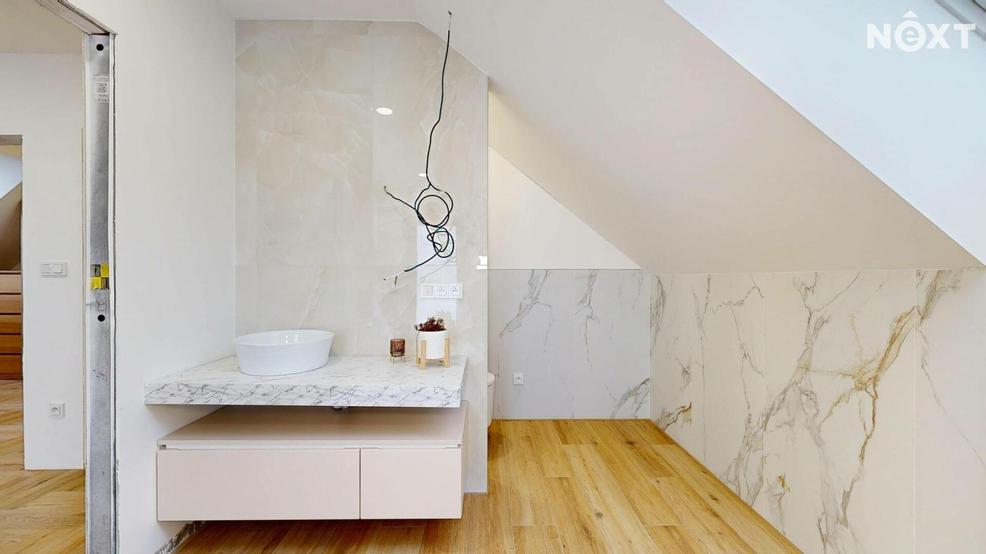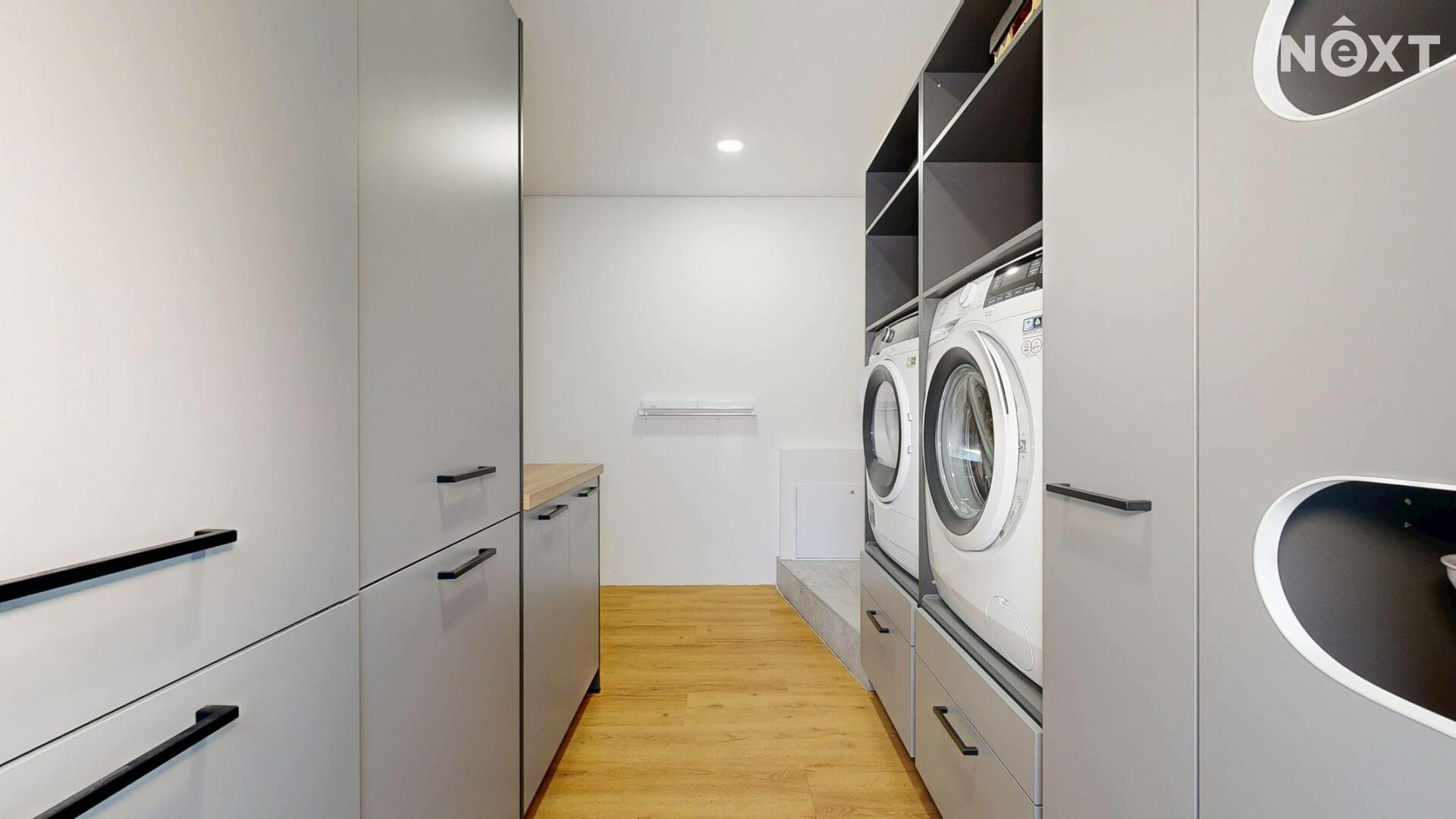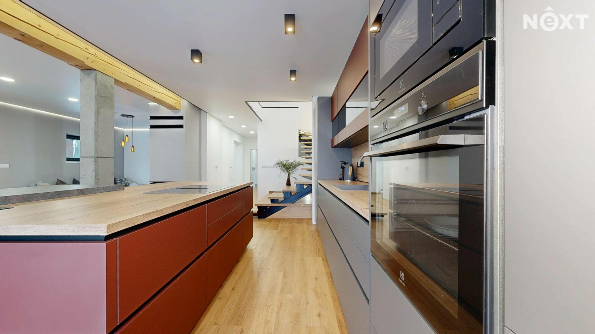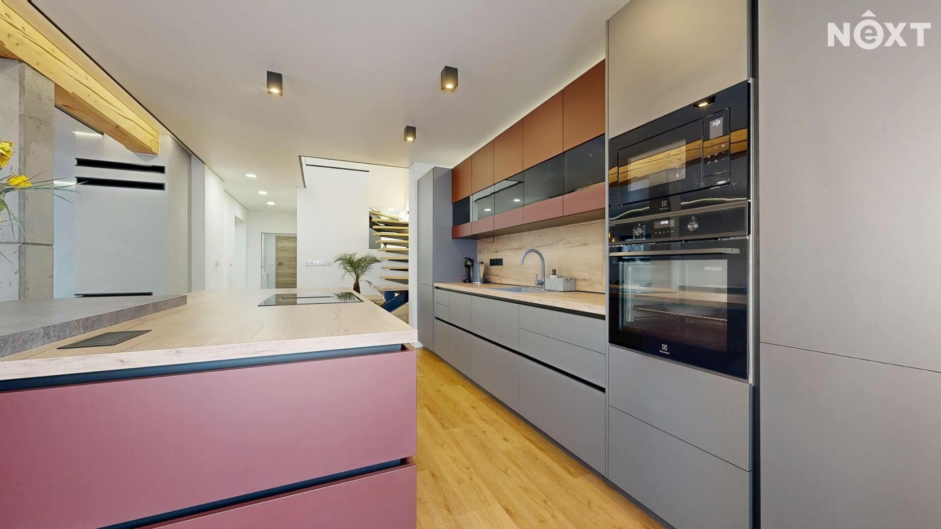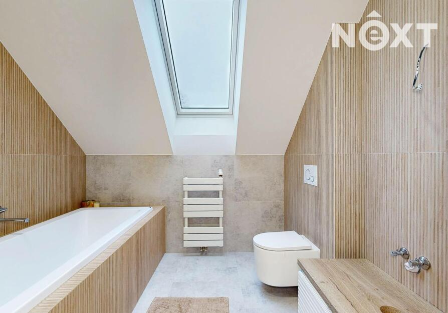 Interiér je vzdušný, vkusný a sladěný do moderního stylu, kde každý detail dává smysl. Dvě podlaží chytře rozdělují denní a noční zónu – v přízemí prostorný obývací pokoj s kuchyní a přímou návazností na budoucí terasu, v patře klid pro ložnice, dětské pokoje či pracovnu. Terasa čeká na dokončení, což je skvělá příležitost dotvořit ji přesně podle vašich představ. Praktickou stránku zajišťuje garáž přímo v domě, takže nákupy v dešti už nebudou drama, také dostatek úložných míst – od šatny po technické zázemí – které ocení každá rodina v domě o dispozici 5+kk. Technicky je dům radost popsat: pasivní standard, trojskla, centrální větrání s rekuperací a vytápění kotlem na pelety drží náklady na provoz na minimu a komfort na maximu. Energetický štítek PENB A dává jistotu, že teplo neuniká, čerstvý vzduch proudí a vy si užíváte zdravé vnitřní klima bez kompromisů. Místnosti jsou světlé, tiché a útulné – ideální na snídani s výhledem do zahrady i večerní odpočinek po práci.