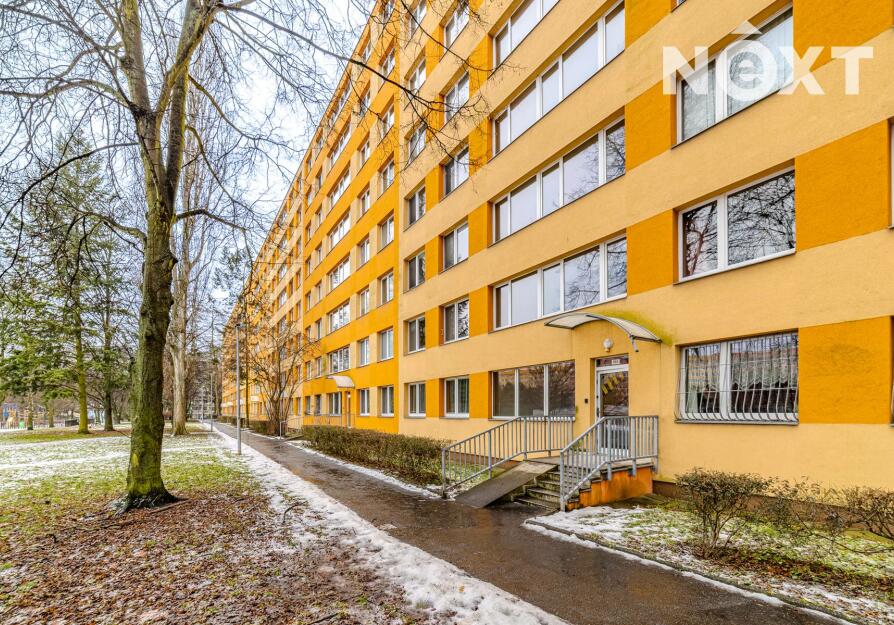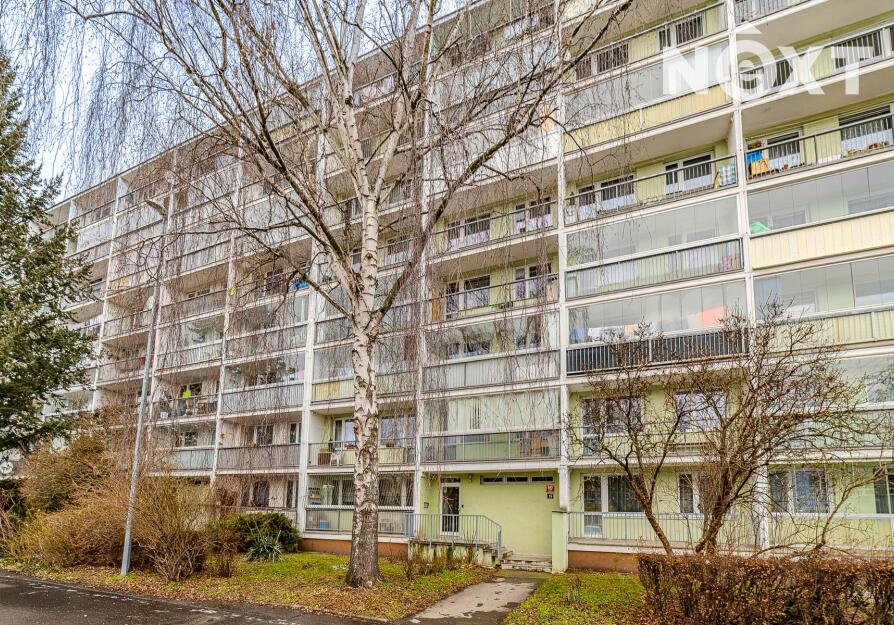 Byt se nachází v šestém patře renovovaného sedmipatrového panelového domu.