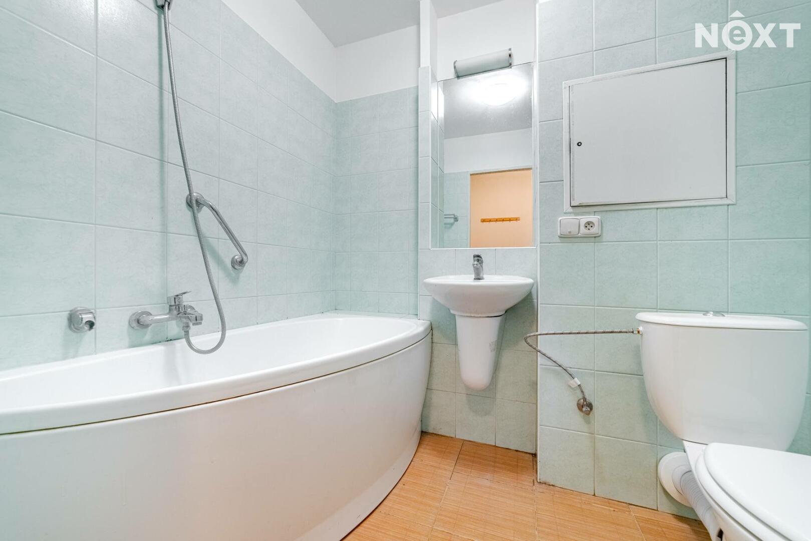 Realizována čerstvá výmalba. Zděné jádro s vanou a wc. Na podlahách plovoucí podlaha a dlažba.