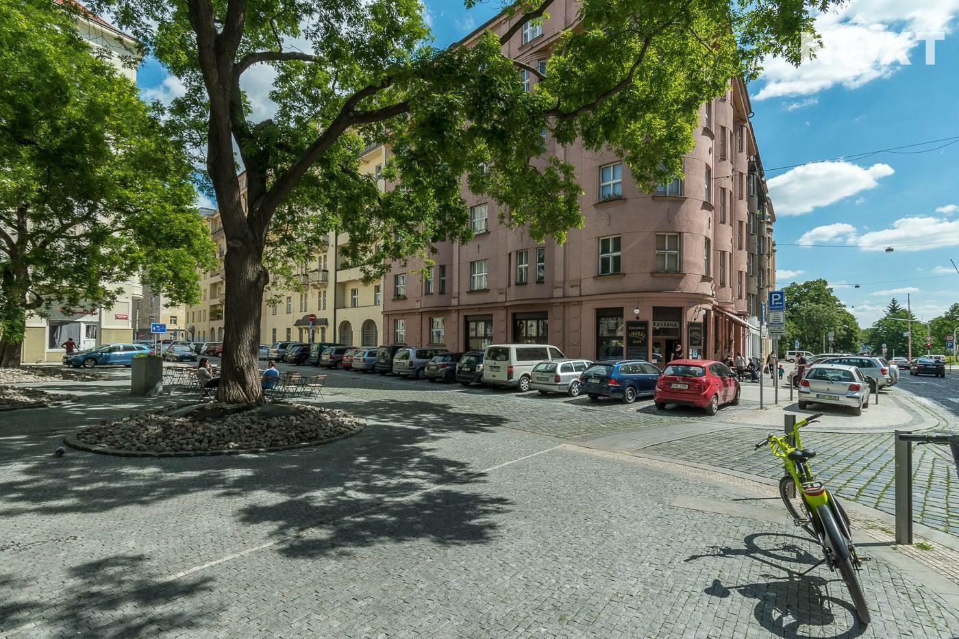 Zajistíme pro vás pronájem studia (byt) 1+kk/32 m2 umístěného v 5. patře bytového domu s výtahem v ul. Heřmanova Praha 7 (Řezáčovo nám.). Byt je orientován do klidného vnitrobloku s výhledem do udržované zahrady (s možností běžně využívat). Dispoziční uspořádání bytu nabízí hlavní obytnou místnost s kuchyňským koutem, koupelnu se sprchou a wc. Vybavení bytu je základní - šatní skříň, kuchyňská linka, varná deska, digestoř, chladnička s mrazákem. Po dohodě je možné zajistit úložný prostor mimo byt. Lokalita má výbornou občanskou vybavenost, v místě kavárny, obchody, služby, na Řezáčově nám. se konají pravidelné farmářské a jiné trhy. Dopravní dostupnost centra prostřednictvím MHD – metro C Vltavská a celá řada tramvajových linek. Nabízený byt je volný ihned nebo dohodou. Dostupnost sítě Internet a kabelové televize je prostřednictvím UPC. Není vhodné pro chovatele (pes, kočka), v bytě se nekouří. V případě zájmu o bližší informace nebo prohlídku kontaktujte makléře. Pro komunikaci uvádějte evidenční číslo zakázky N116014.