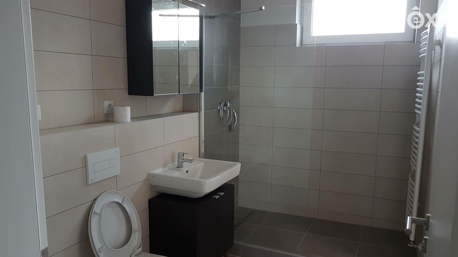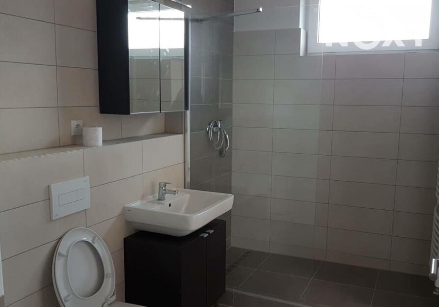 Koupelna je včetně wc, opatřena sprchovým koutem a skříňkou se zrcadlem.