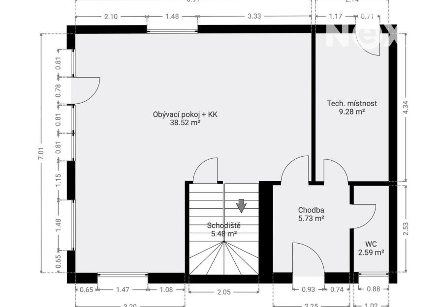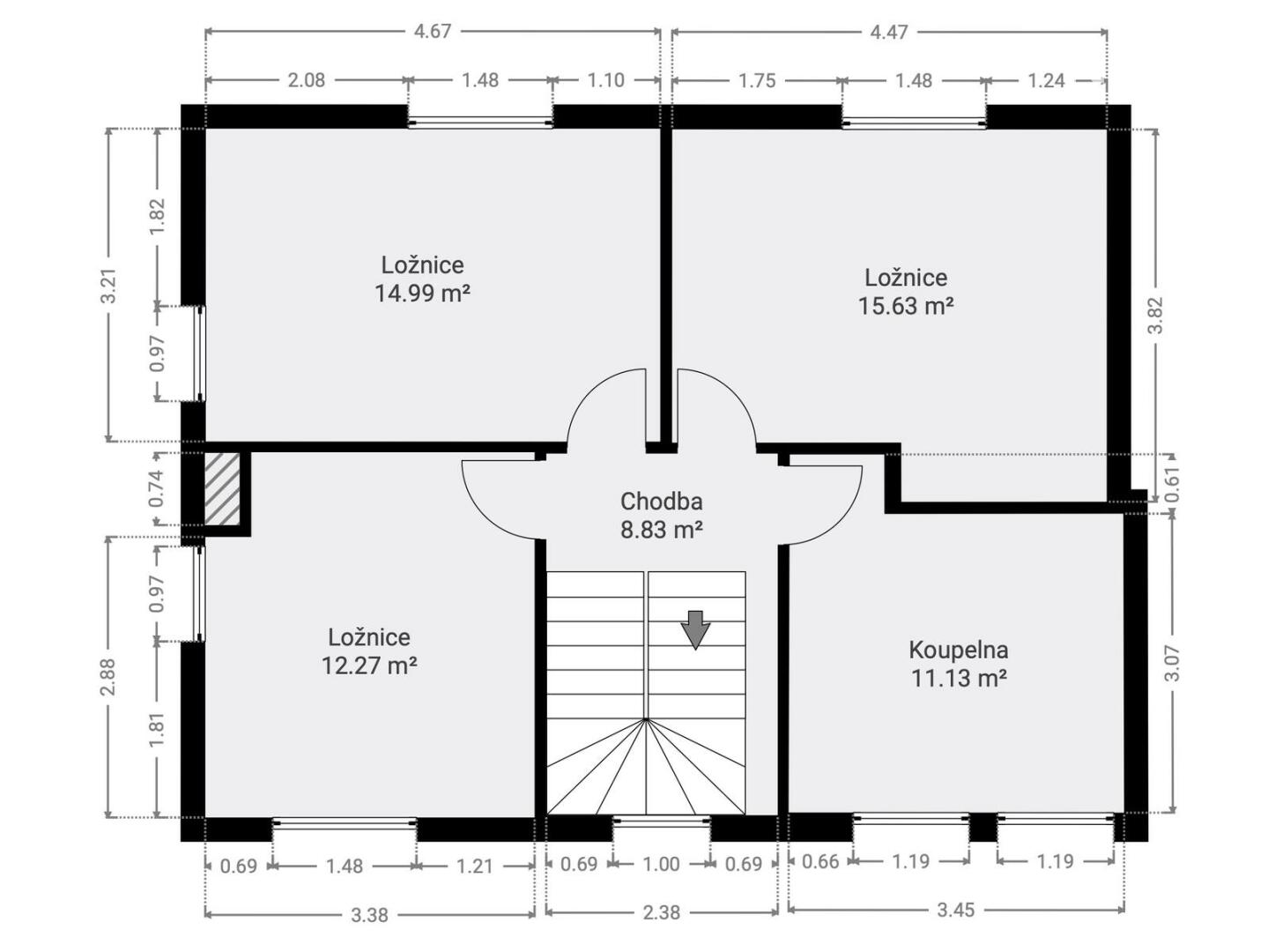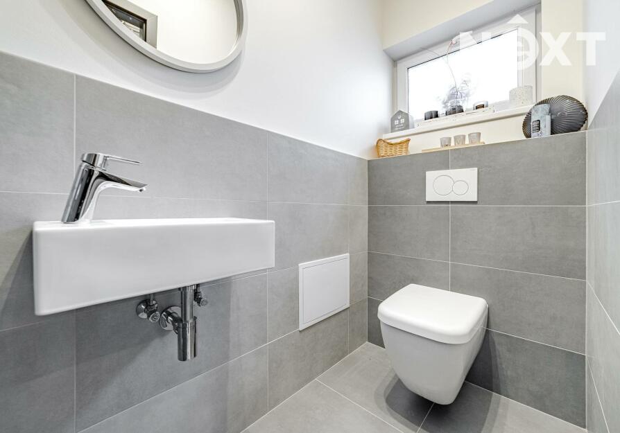 O vysoký komfort bydlení se stará elektrické podlahové vytápění, venkovní žaluzie a velmi nízké provozní náklady.