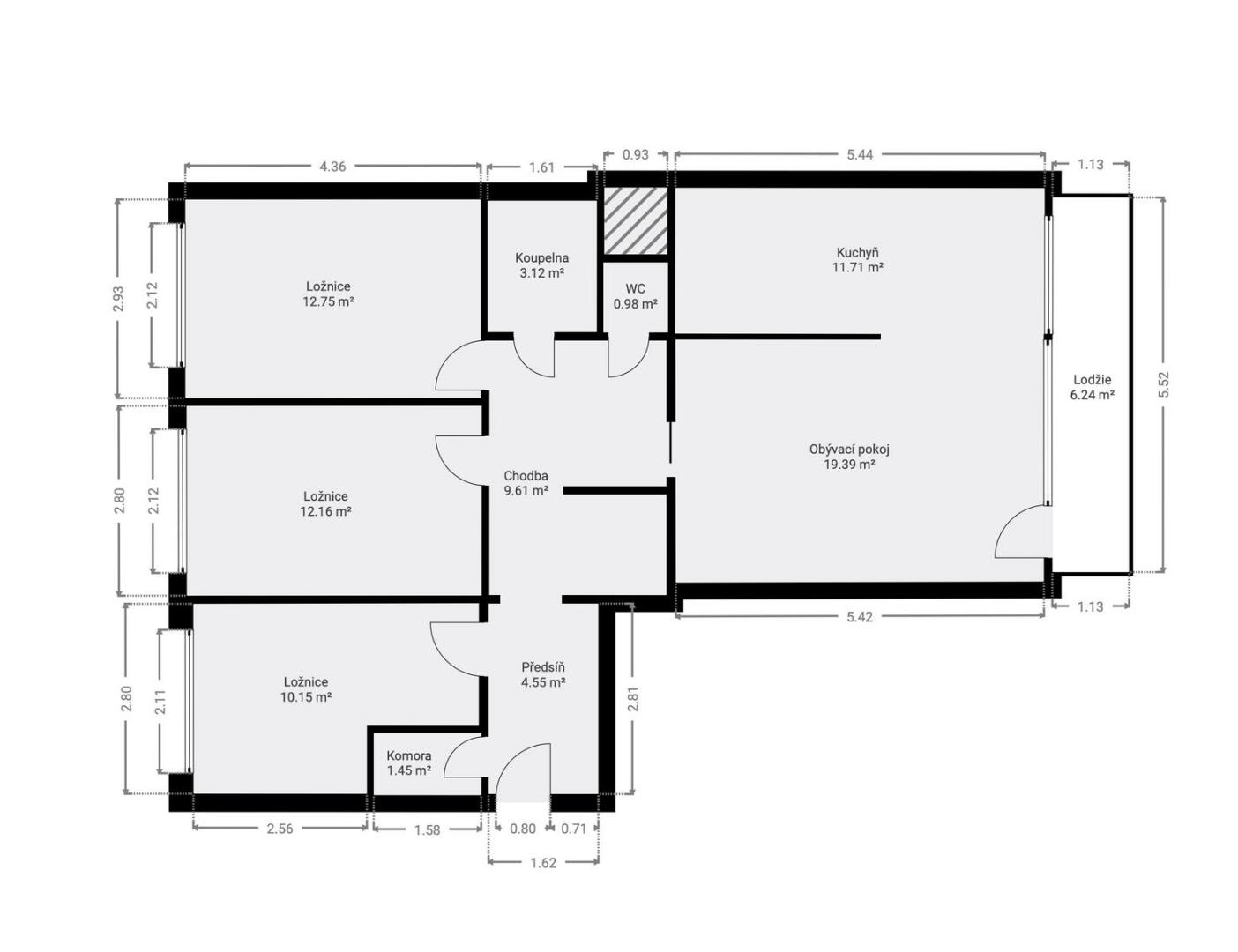 Byt prošel rekonstrukcí v roce 2015 a je koncipován tak, aby dával smysl každodennímu životu. Otevřený obývací prostor s kuchyňským koutem tvoří přirozené centrum domácnosti; další pokoje poskytují dostatek soukromí pro rodinu, pracovnu i hosty. Lodžie rozšiřuje obytný prostor o příjemné místo pro ranní kávu nebo večerní klid.