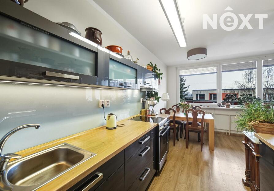 Dispozice 4+kk je ideální pro rodinu, ale zároveň dostatečně flexibilní pro kombinaci bydlení a práce z domova. Rekonstrukce z roku 2015 přinesla modernizaci interiéru a praktická řešení úložných prostor. Plovoucí podlahy a dlažba se dobře udržují a koberec dodává pocit tepla a pohodlí.
