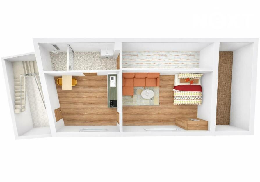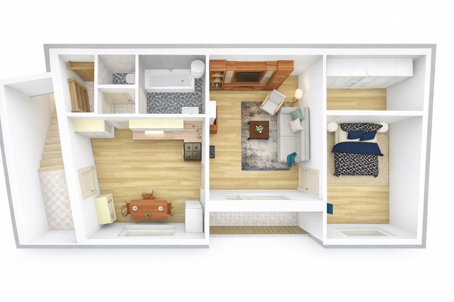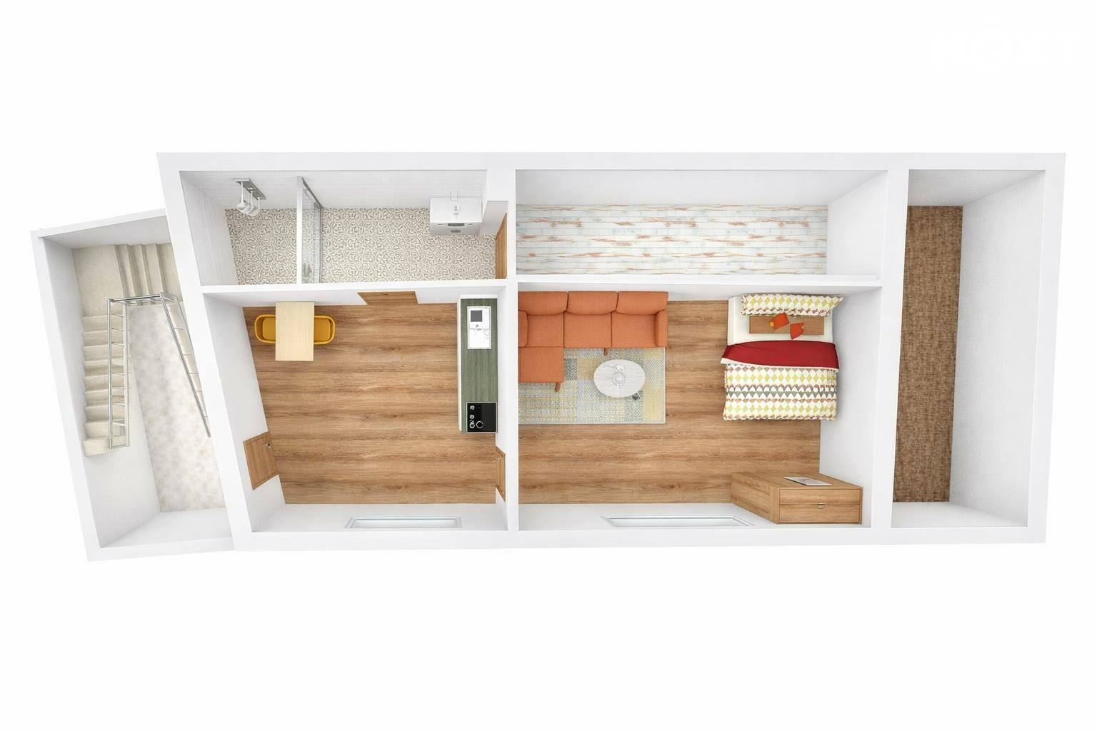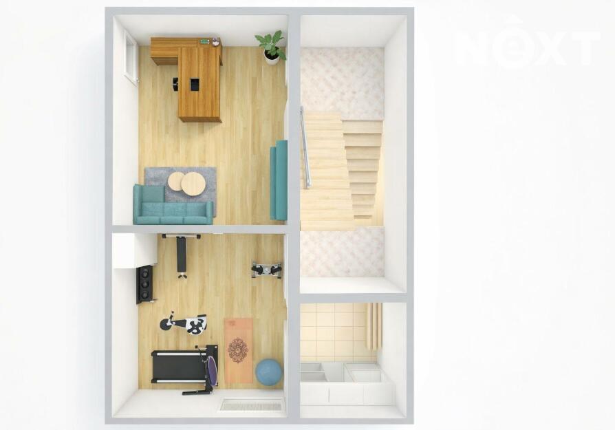 V mezipatře domu se nachází další dva pokoje, přičemž jeden je průchozí – vhodné např. jako pracovna, posilovna, pokoj pro hosty či rozšíření obytného prostoru.