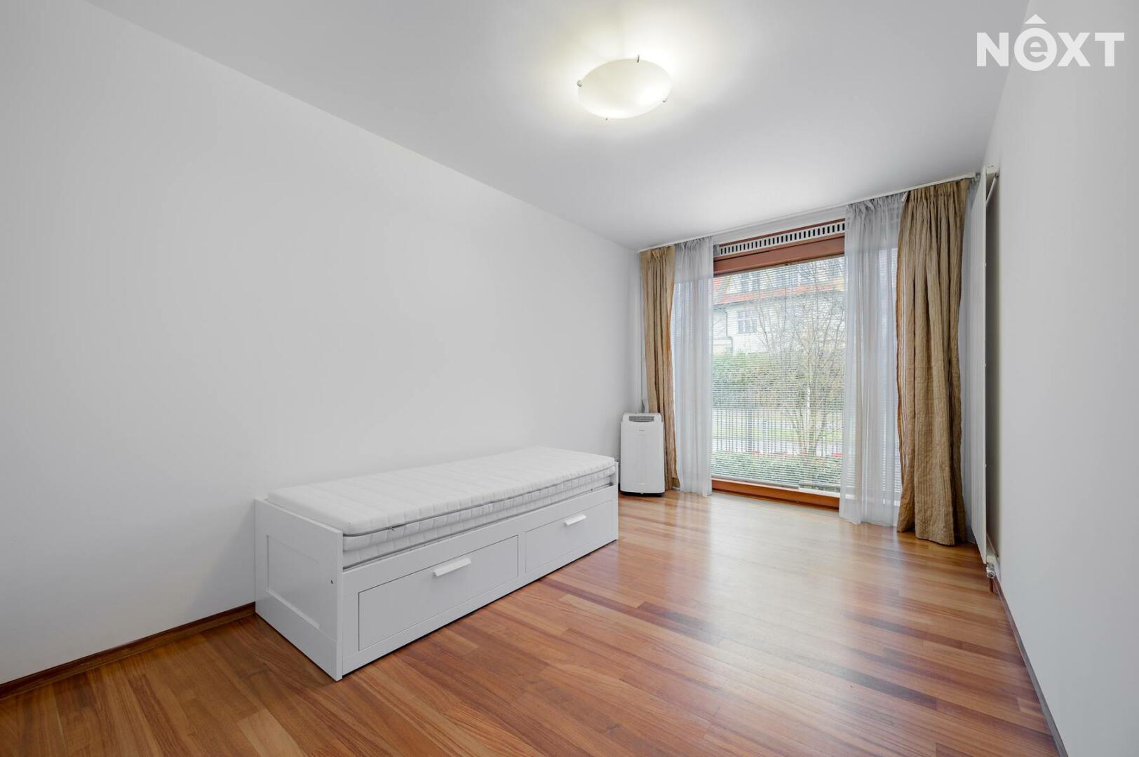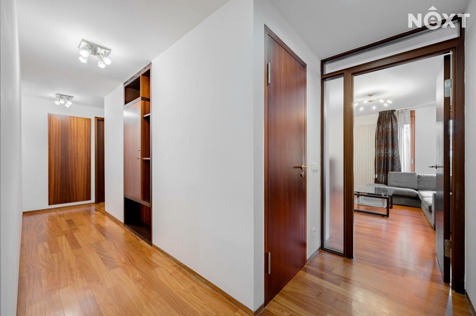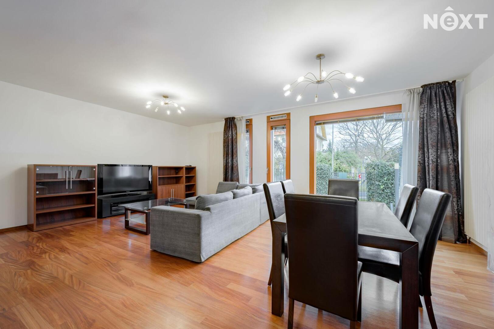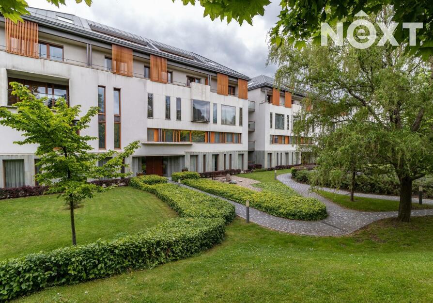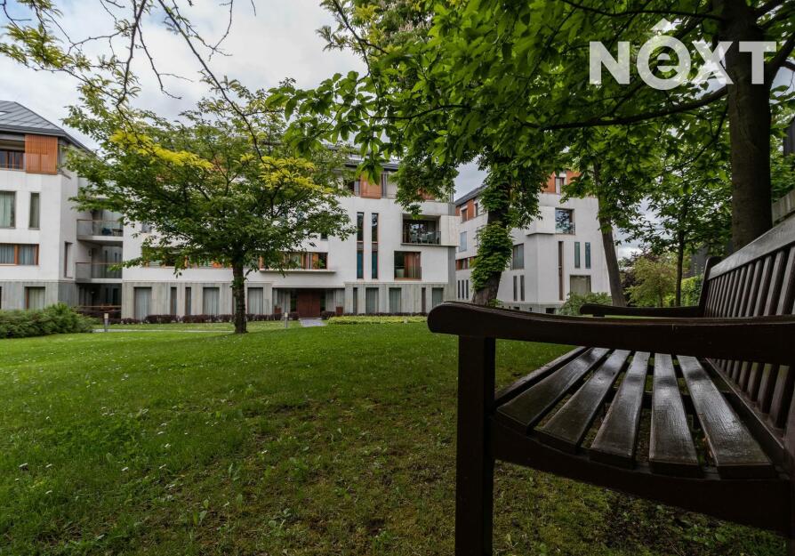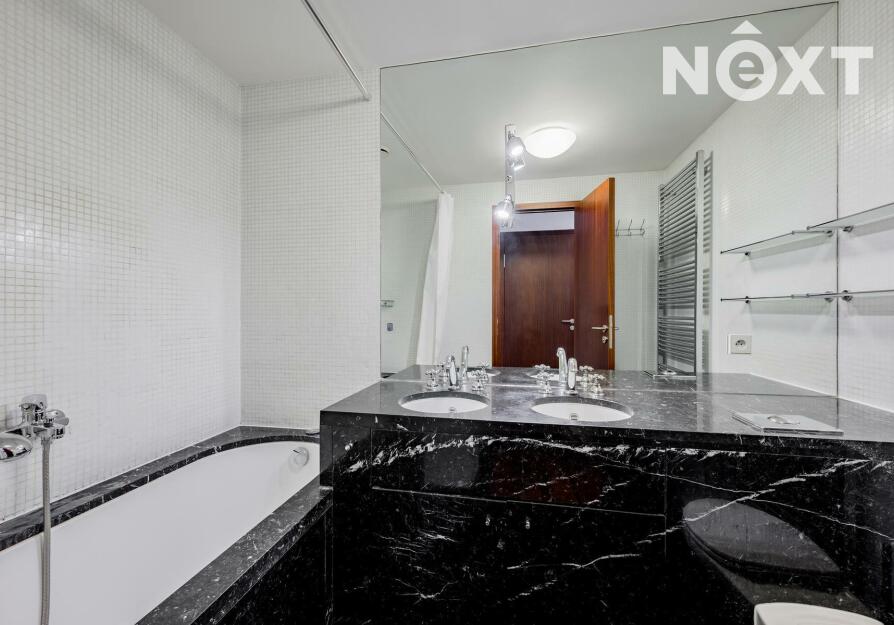 Two bedroom furnished apartment with a garage in Residence Villa Bianca for rent. The total area of the apartment is 107 sqm and is located on the 1st floor with an elevator. Consists of an entrance hall, living room with a dining area, fully equipped kitchen with appliances, 2 separate bedrooms, 2 bathrooms (bath, shower, toilet), separate toilet and a technical room (washing machine and dryer). Equipment of the apartment is modern. The floors are wooden and the bathrooms have terrazzo. The apartment has 1 underground garage space and a storage room. The building is guarded by 24-hour security and is fenced. Modern living with excellent transport accessibility (tram, metro). Available immediately. Pro komunikaci uvádějte evidenční číslo zakázky N116070.