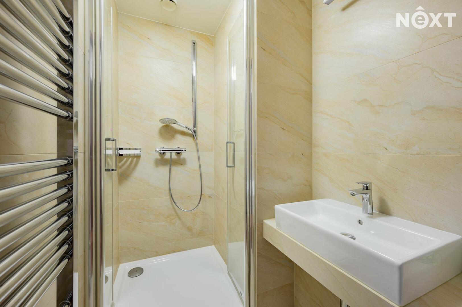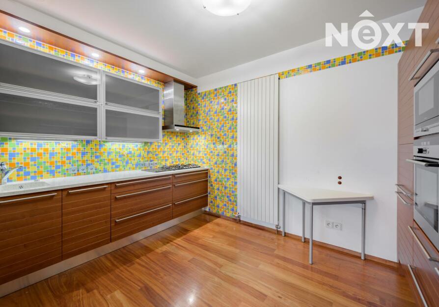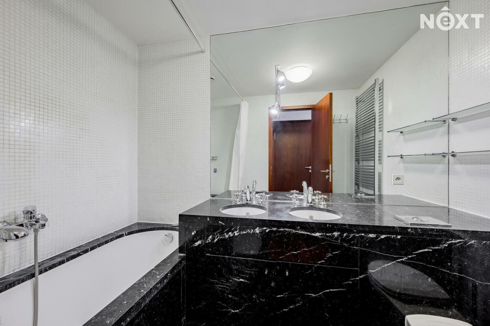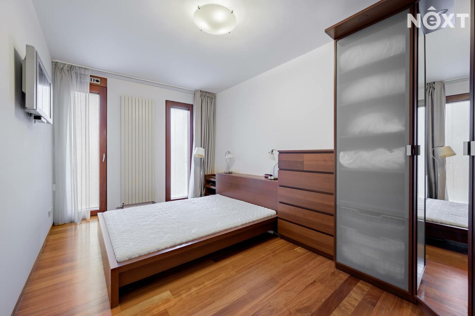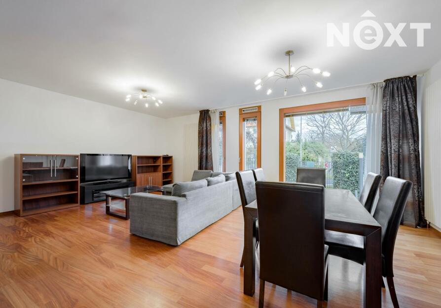 Two bedroom furnished apartment with a garage in Residence Villa Bianca for rent. The total area of the apartment is 107 sqm and is located on the 1st floor with an elevator. Consists of an entrance hall, living room with a dining area, fully equipped kitchen with appliances, 2 separate bedrooms, 2 bathrooms (bath, shower, toilet), separate toilet and a technical room (washing machine and dryer). Equipment of the apartment is modern. The floors are wooden and the bathrooms have terrazzo. The apartment has 1 underground garage space and a storage room. The building is guarded by 24-hour security and is fenced. Modern living with excellent transport accessibility (tram, metro). Available immediately. Pro komunikaci uvádějte evidenční číslo zakázky N116070.