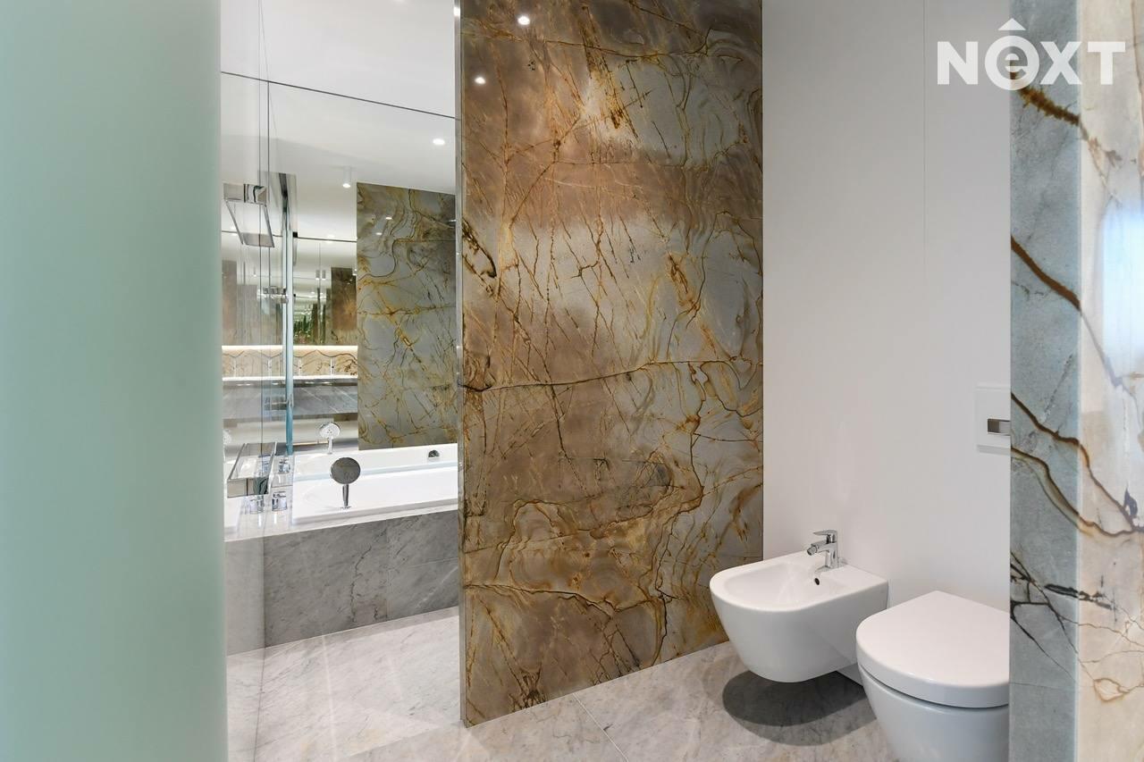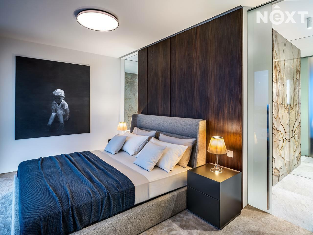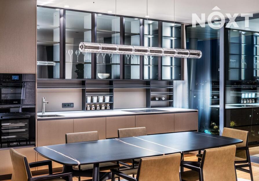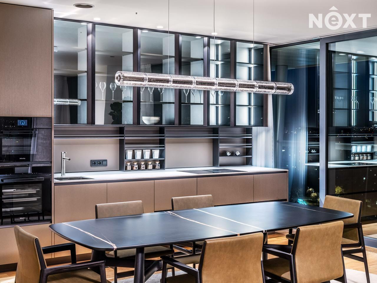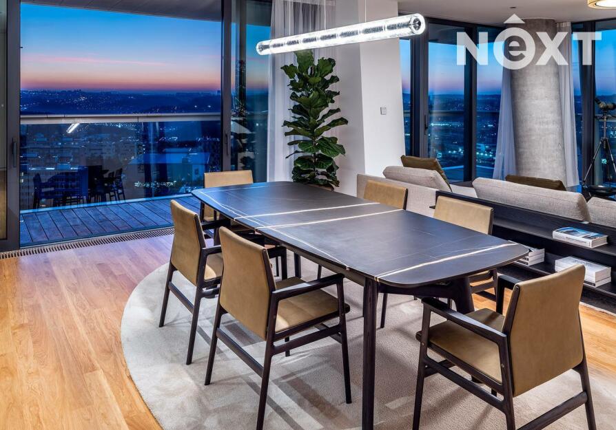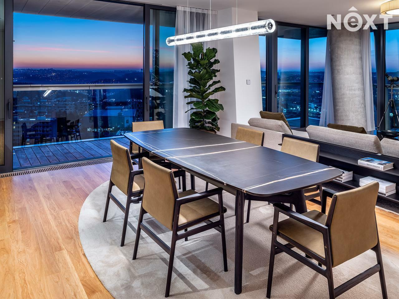Byt je navržen a vybaven exkluzivním nábytkem od společnosti Poliform, technikou Loewe a B&O či obrazy od Prof. Vladimíra Kopeckého, Petra Nikla a Tomáše Predky.