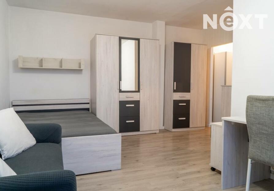 Obytný pokoj nabízí komfortní a funkční zařízení: dvojlůžko s kvalitní matrací, noční stolek, nástěnný držák na TV, dvě židle, prostornou šatní skříň, komodu, psací stůl, police a stylovou menší pohovku, ideální pro odpočinek i práci z domova.