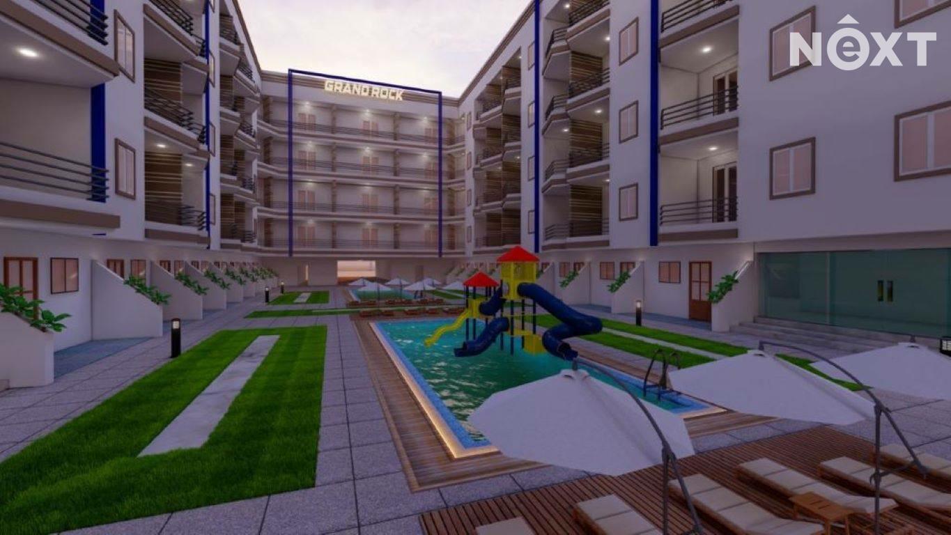 Moderní vzhled rezortu - bazény, posilovna, security 24/7, hotelové služby.