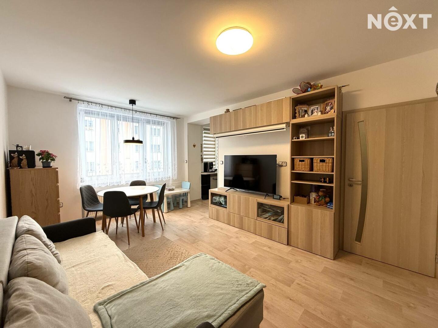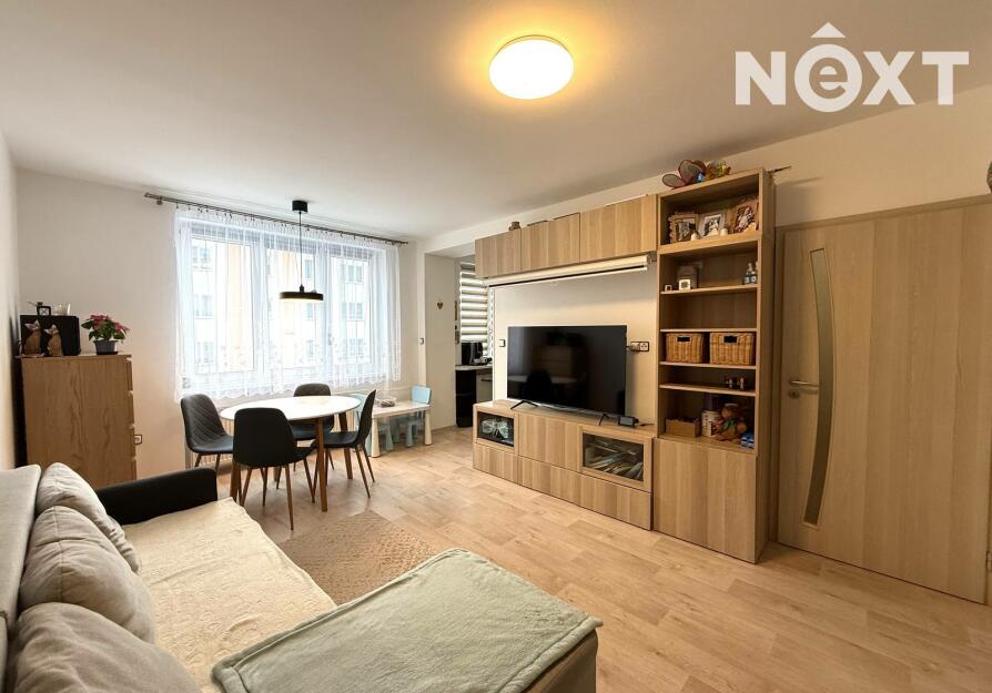 Dispozice bytu: vstupní chodba s vestavěnými skříněmi, obývací pokoj propojen s kuchyňským koutem, ložnice a dětský pokoj, zděné jádro - koupelna s vanou a samostatné wc.