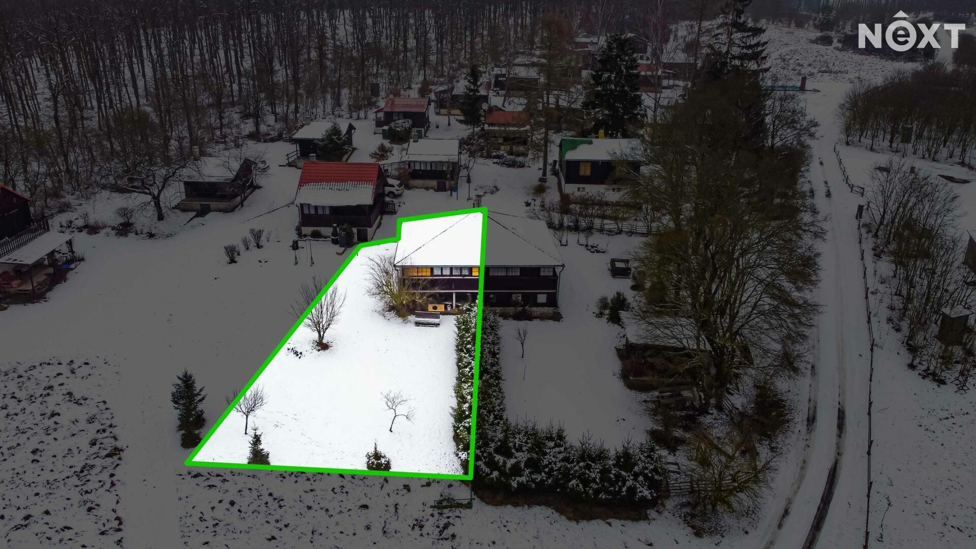 Součástí prodeje je spoluvlastnický podíl na okolních pozemcích odpovídající výměře cca 2 435 m² a dále podíl na vedlejší stavbě – bývalé klubovně. Parkování je možné v těsné blízkosti chaty.