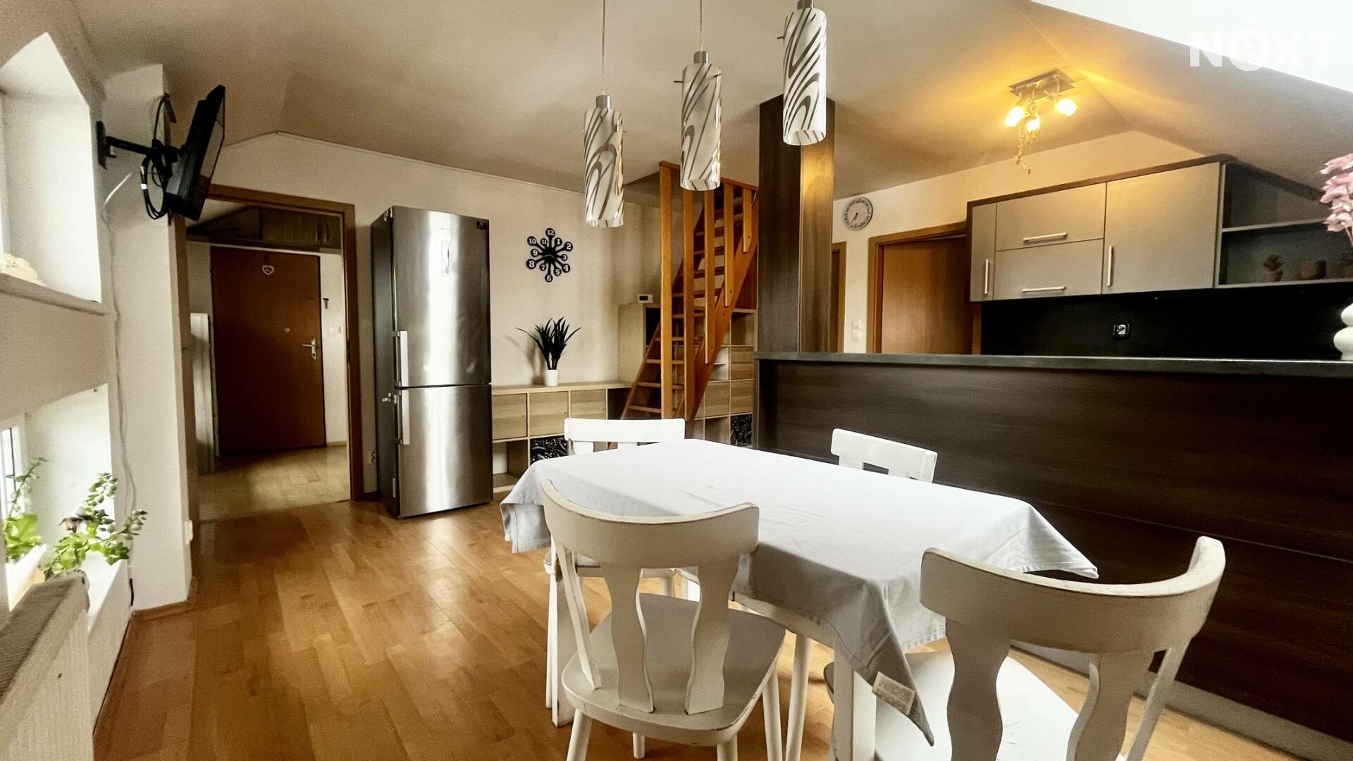 Nabízíme k prodeji mezonetový byt s funkční dispozicí, vybavený a rozložený do dvou podlaží.