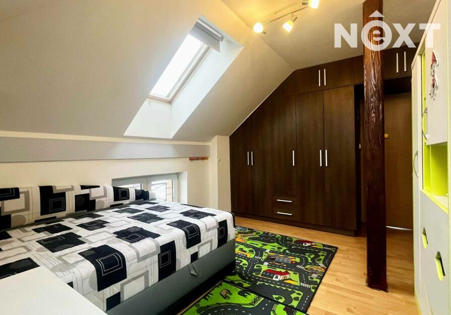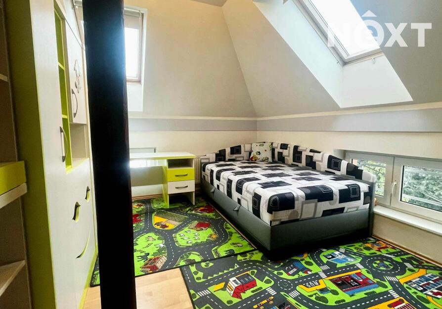 Hlavní obytnou část tvoří kuchyně vybavená spotřebiči, propojená s jídelnou, která plynule navazuje na obývací pokoj. Prostor je řešen otevřeně, nabízí dostatek místa pro běžný provoz domácnosti i posezení. Součástí spodního patra je také samostatný pokoj, vhodný jako dětský pokoj, pracovna nebo pokoj pro hosty.