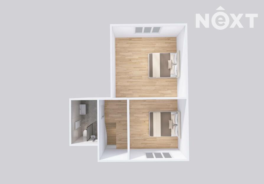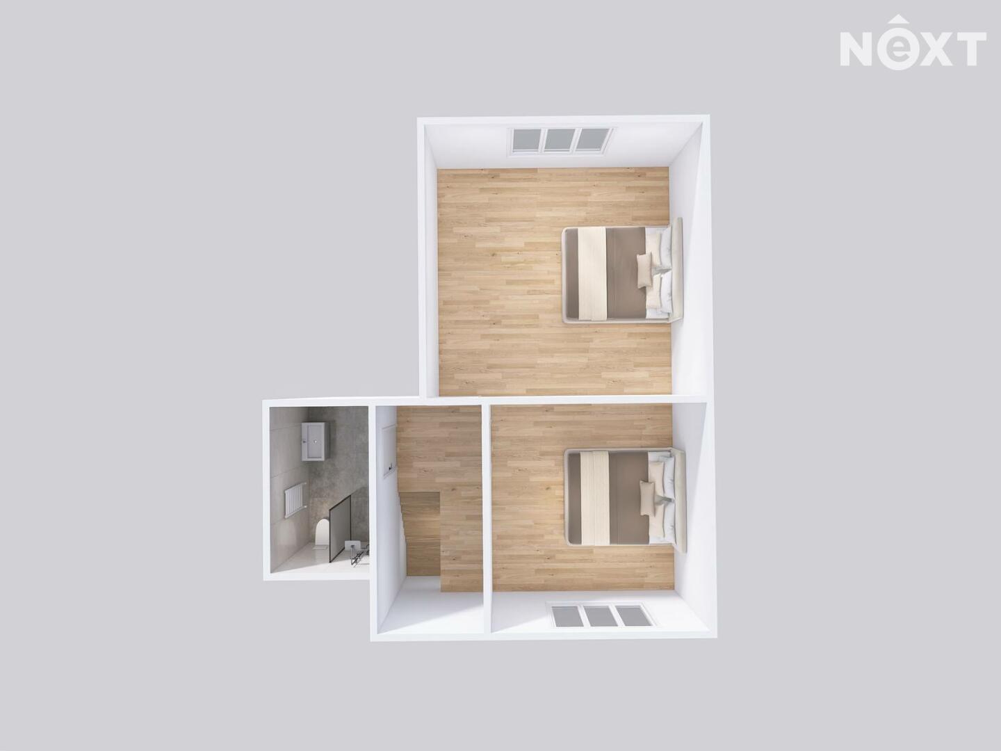 Dva velkorysé pokoje a další koupelna.
