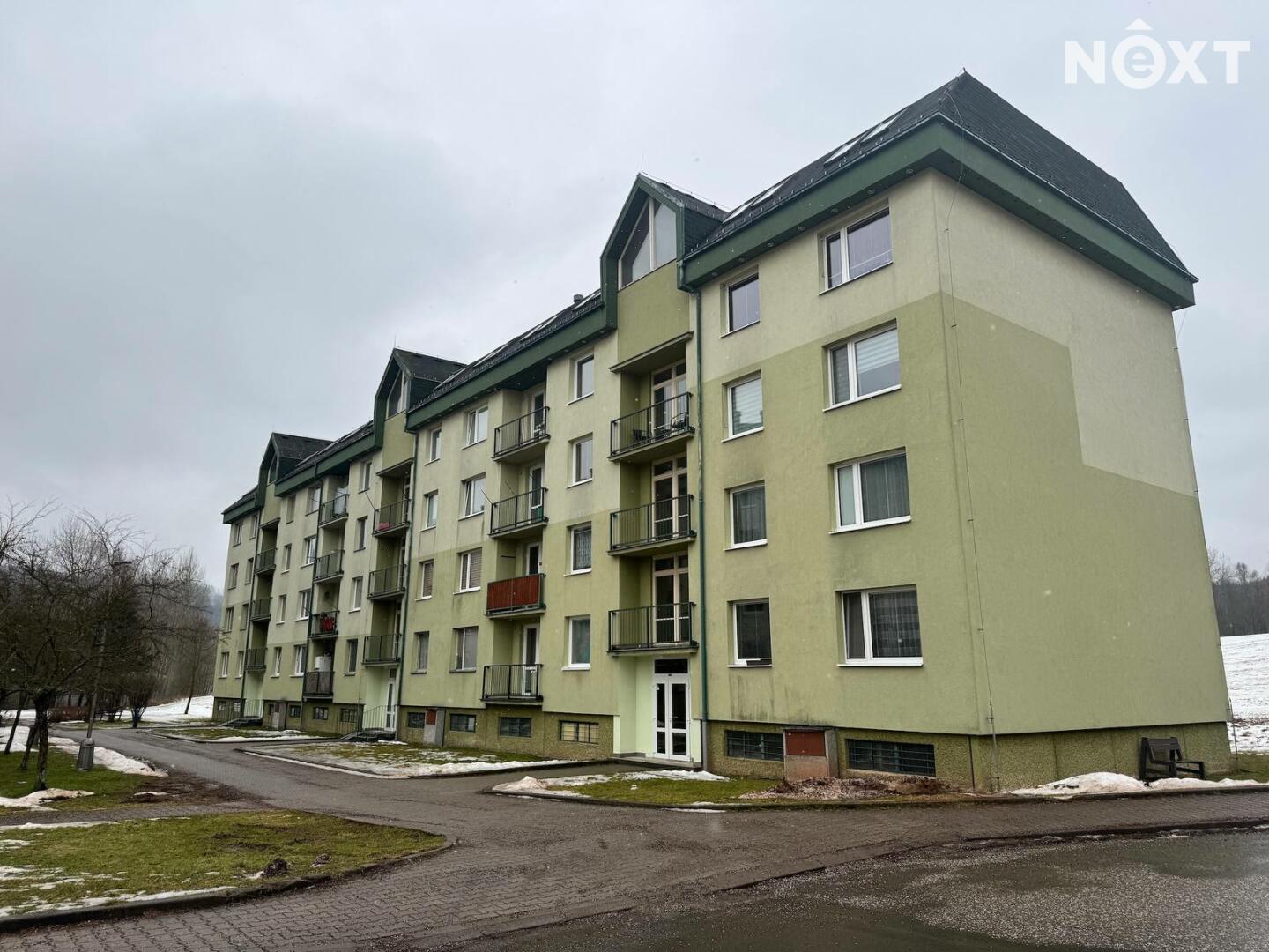 Pronájem nově zrekonstruovaného bytu 2+1 s balkónem (52m2) v Radvanicích u Trutnova, 3. patro bez výtahu.