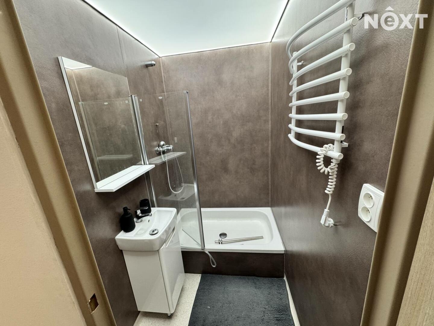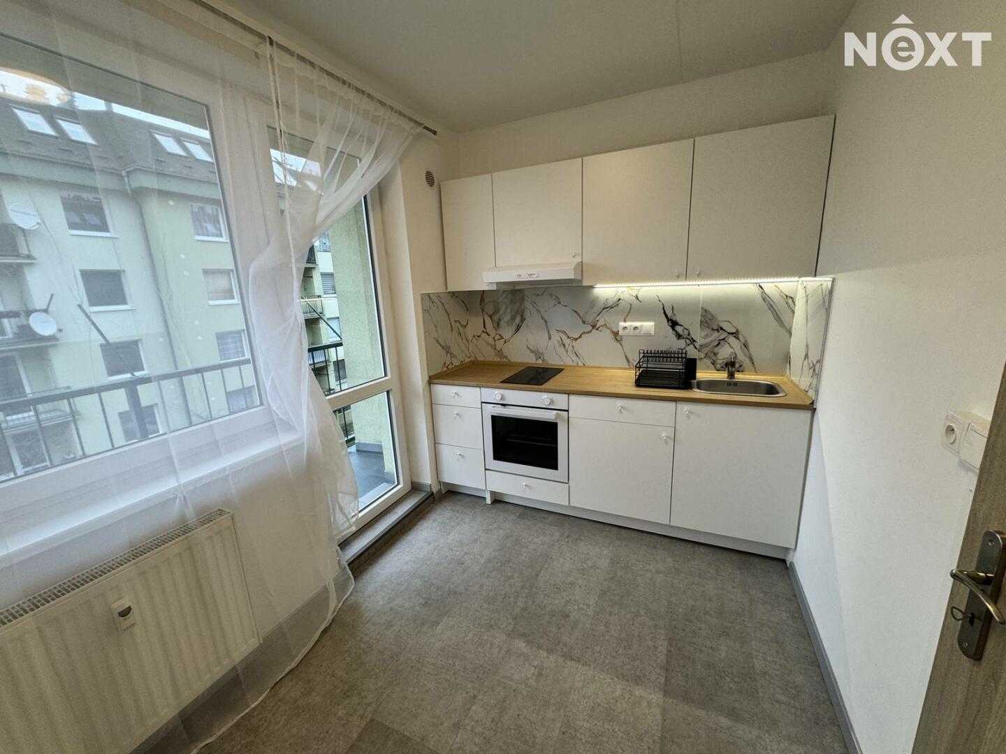 V bytě je moderní, nadčasová kuchyně s dostatkem pracovní plochy, úžasná koupelna se sprchovým koutem a samostatné WC. K dispozici je i sklep.